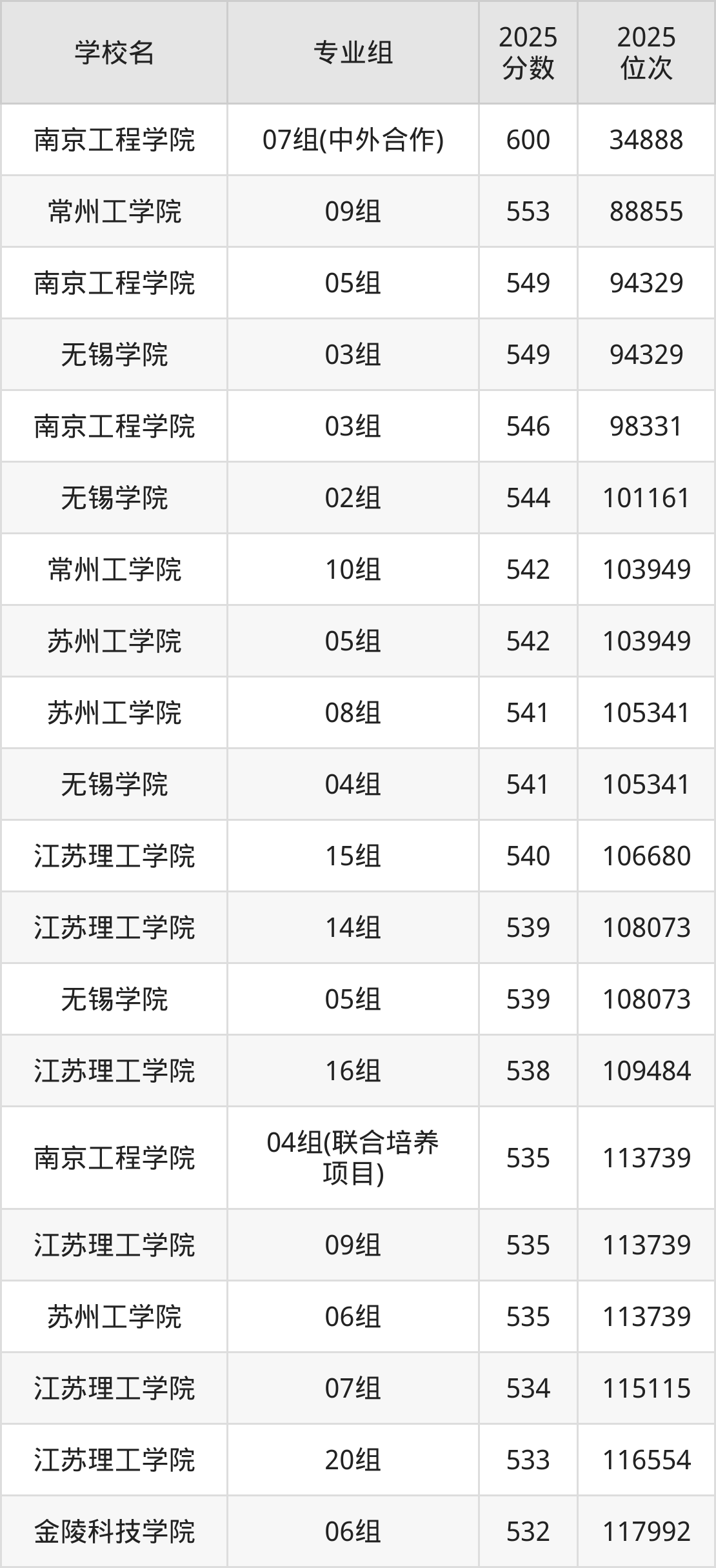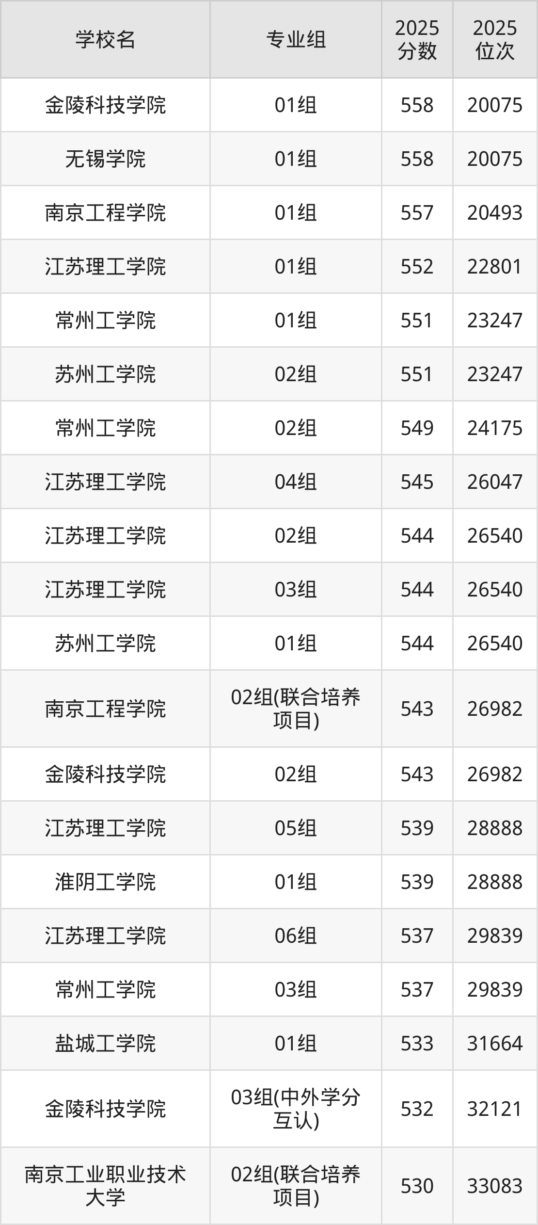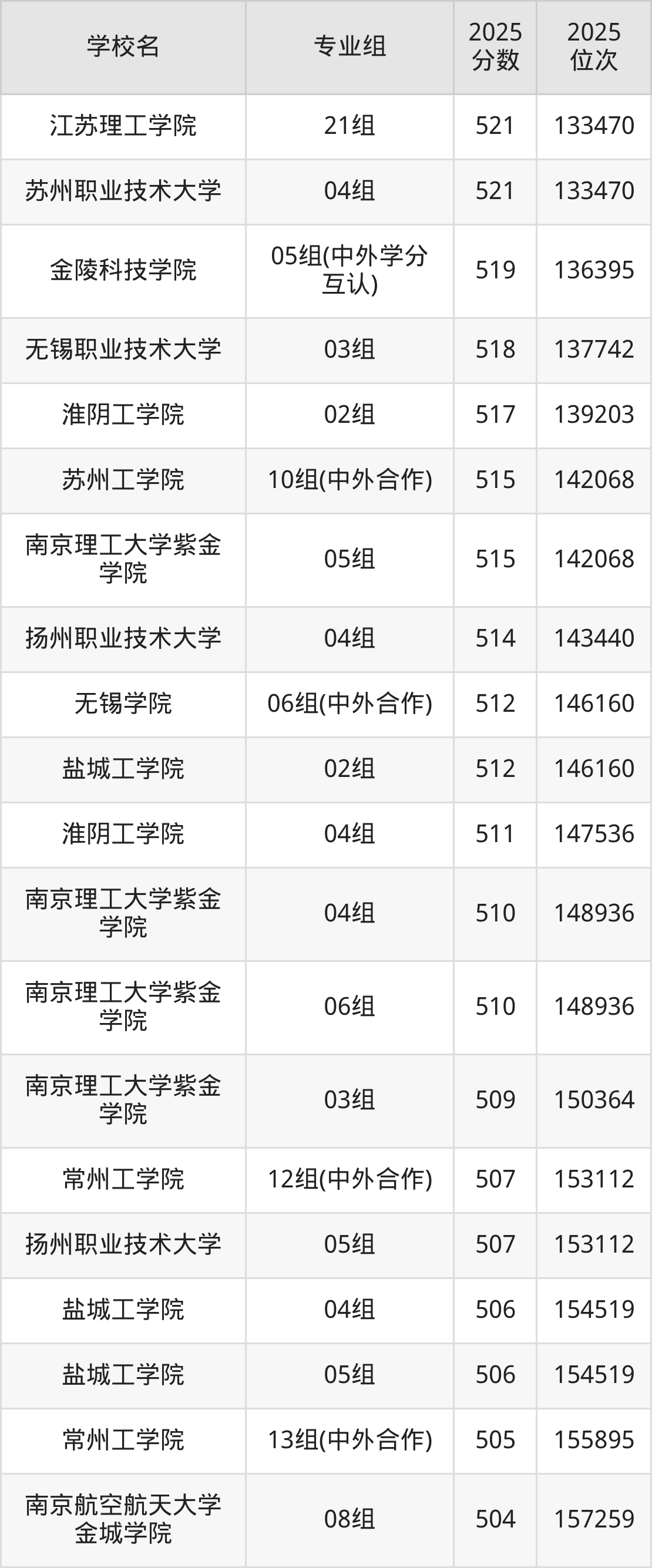 江苏省所有二本理工院校2025年录取分数线一览表(前98院校专业组):