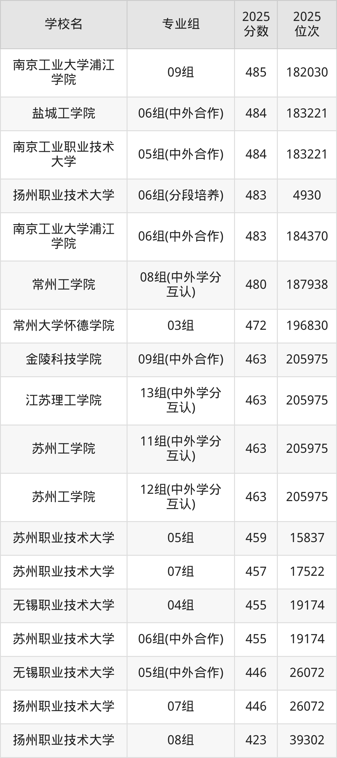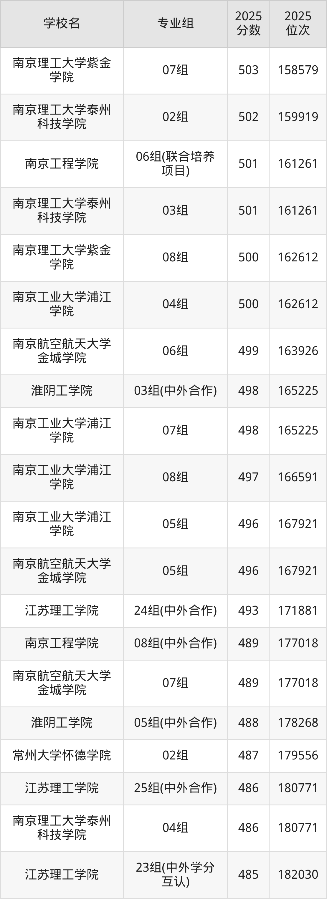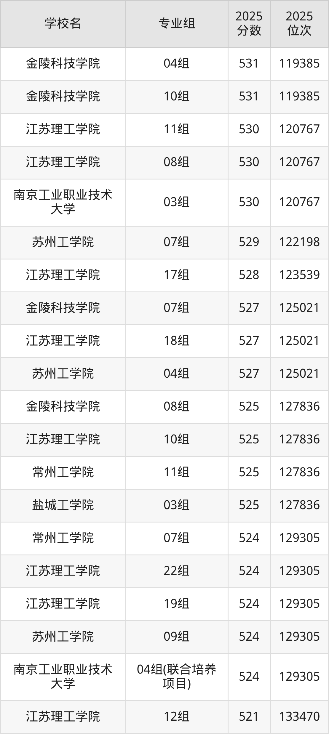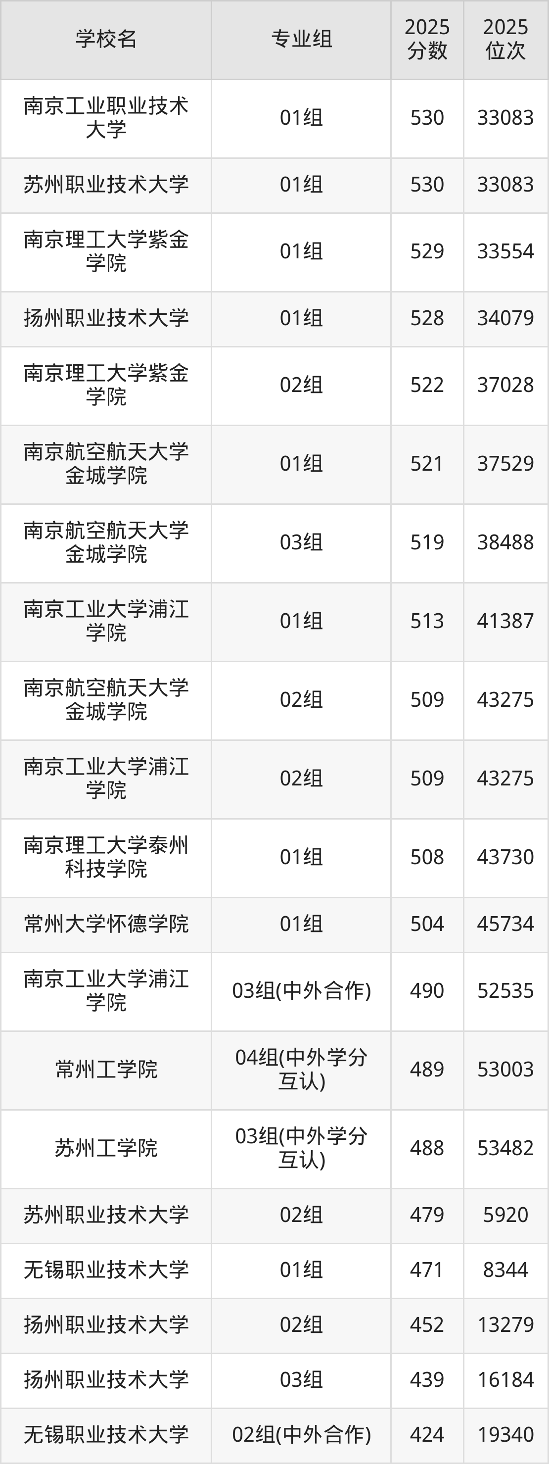 江苏省所有二本理工院校2025年录取分数线一览表(前98院校专业组):