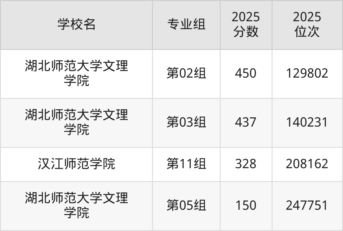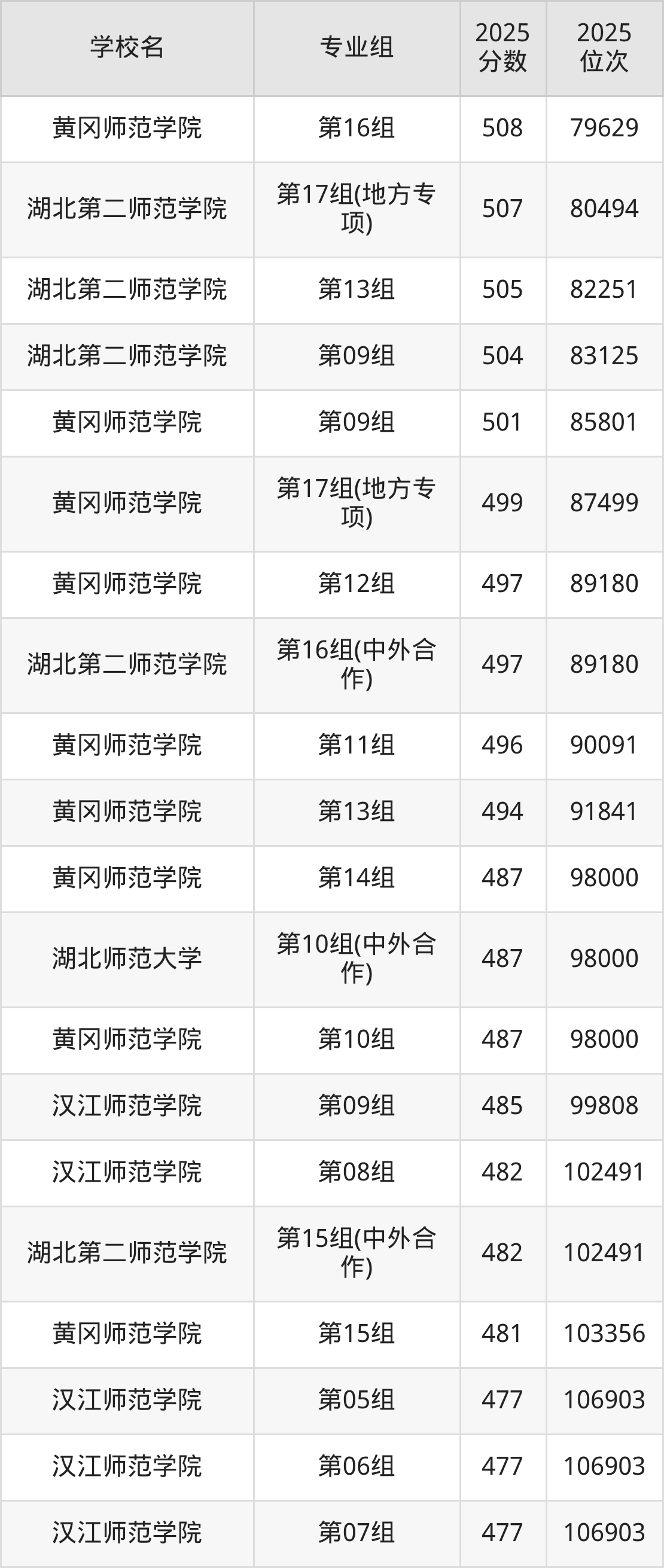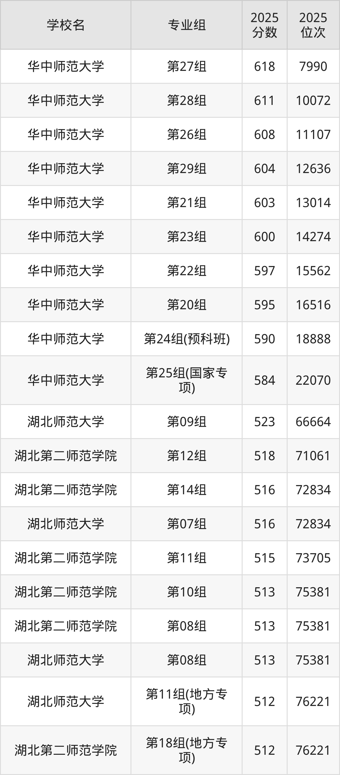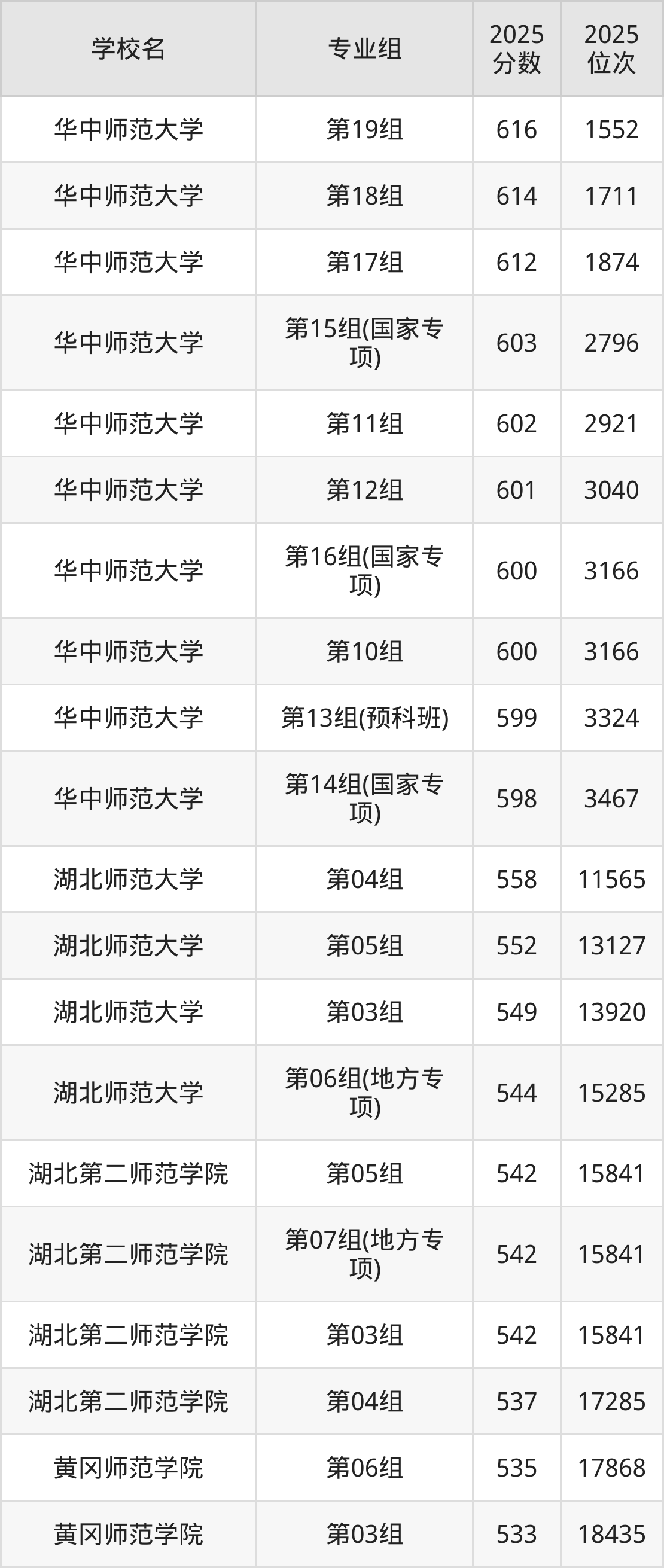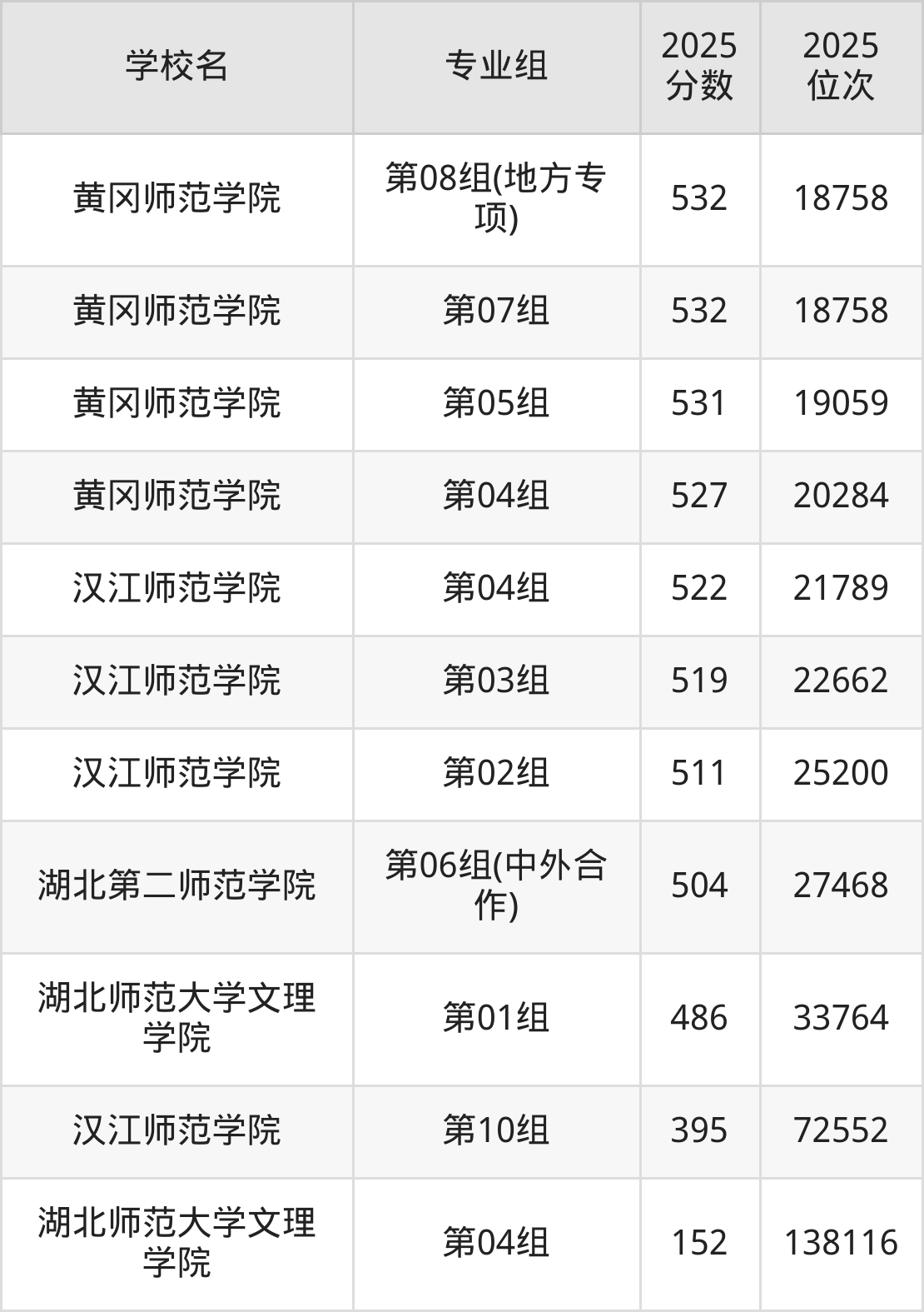 湖北省所有师范类院校2025年录取分数线一览表(前44院校专业组):