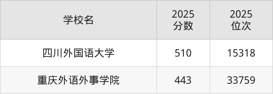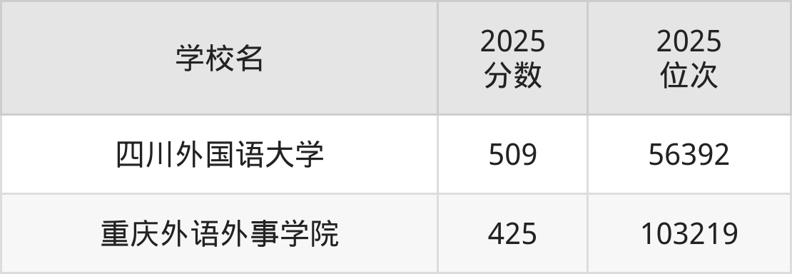 重庆市所有语言类院校2025年录取分数线一览表(前2院校):