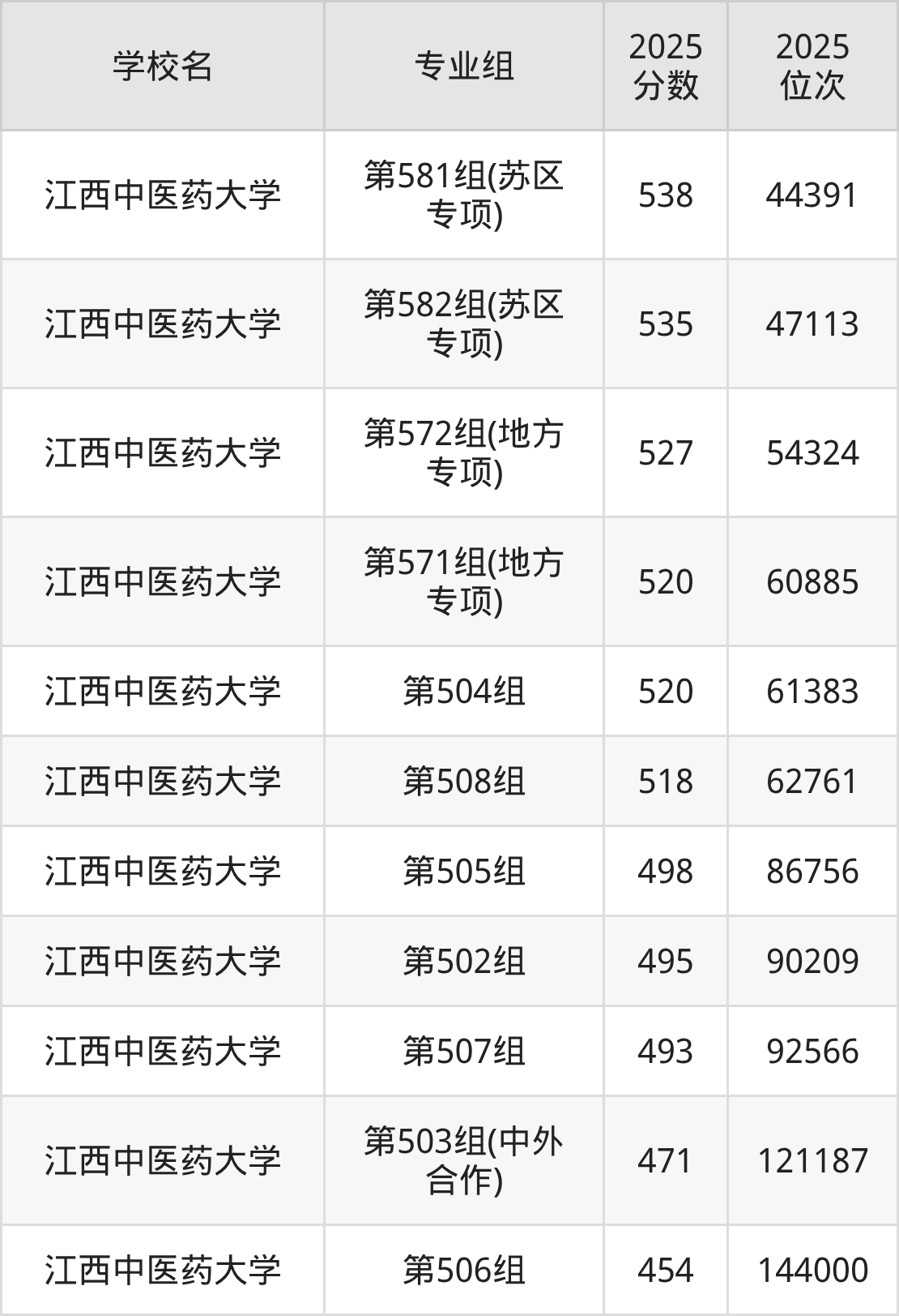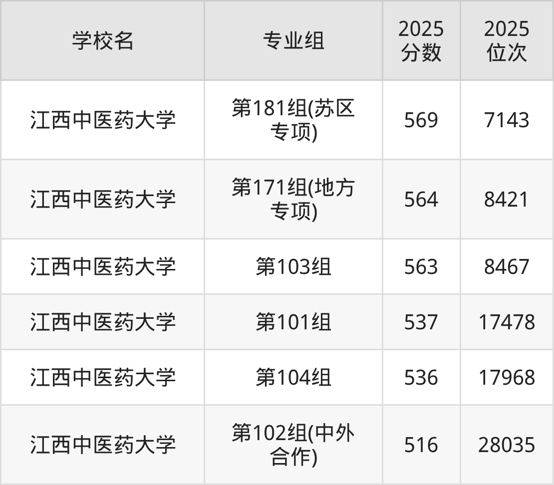 按照2025年江西省所有中医药院校在省内录取分数线高低排名,为大家整理出了江西所有中医药院校名单如下。