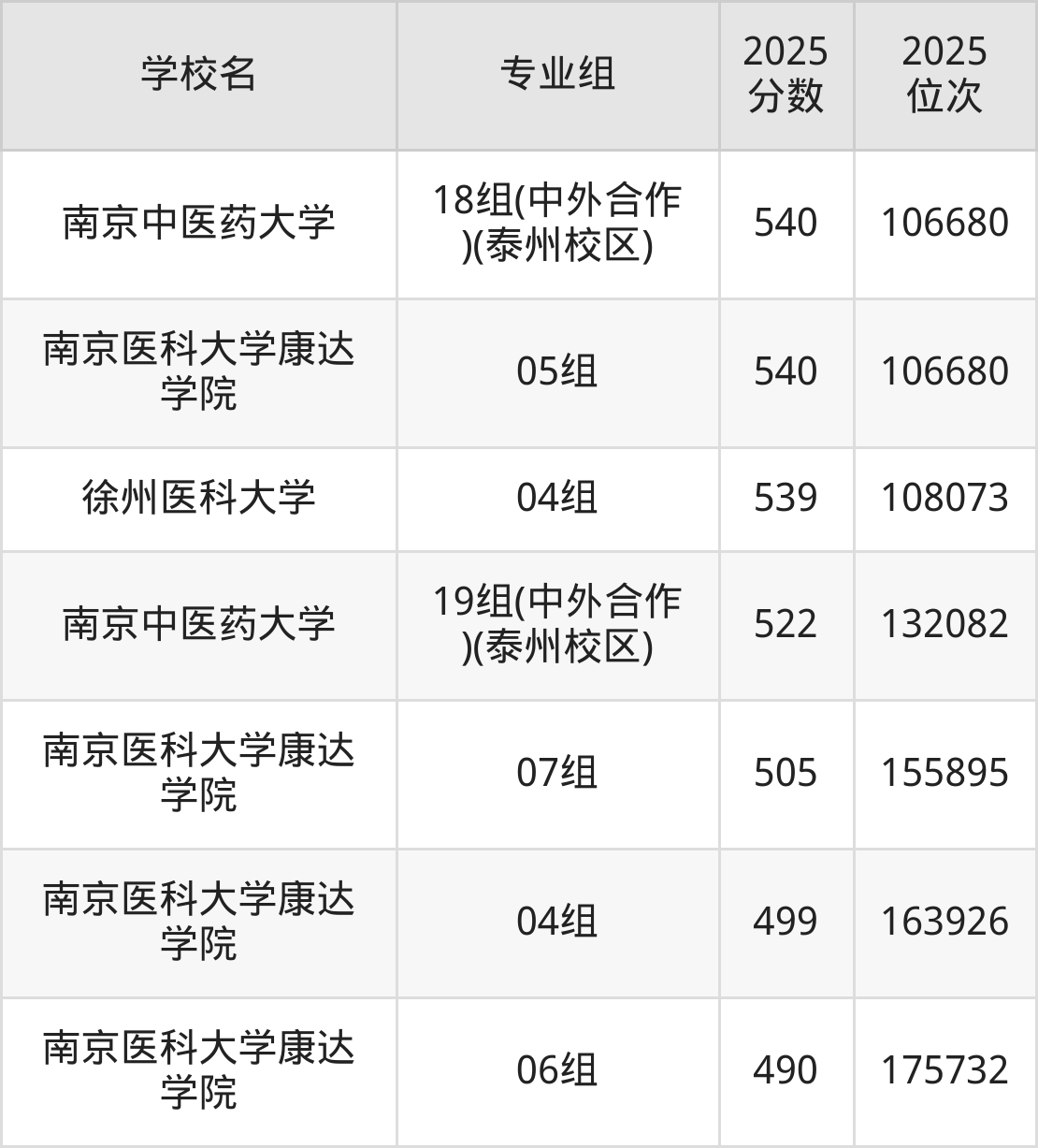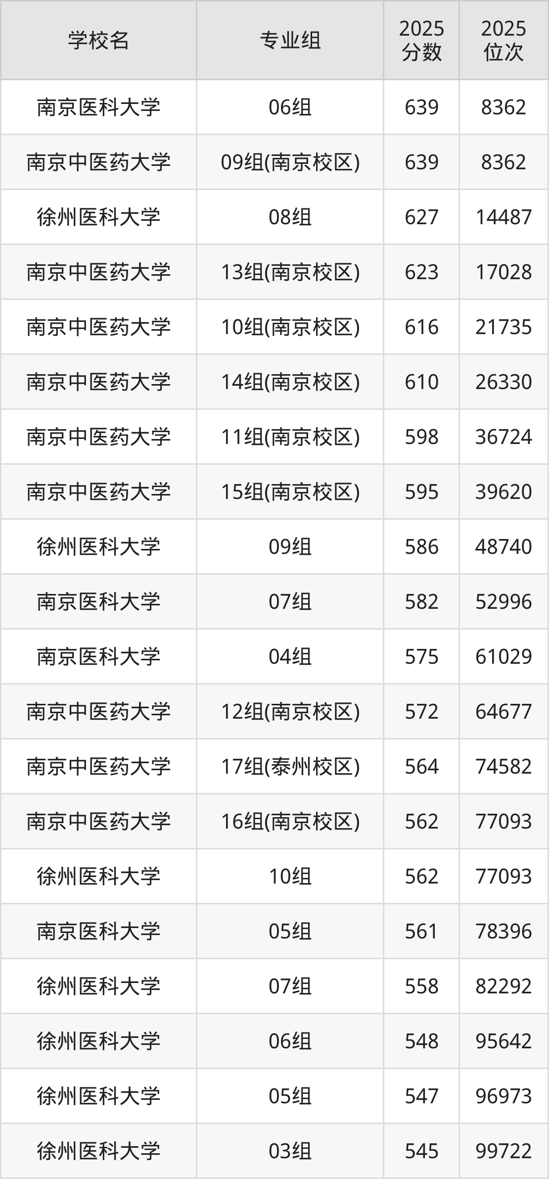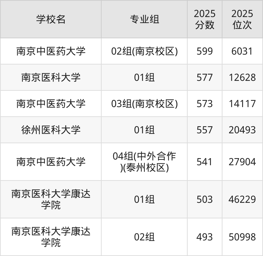 江苏省所有医科院校2025年录取分数线一览表(前27院校专业组):