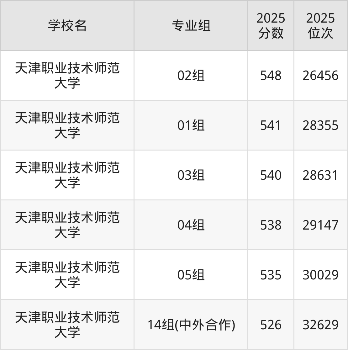 最难考、收分最高的是:天津职业技术师范大学,2025年学校的02组最低分548分,对应排位26456名。