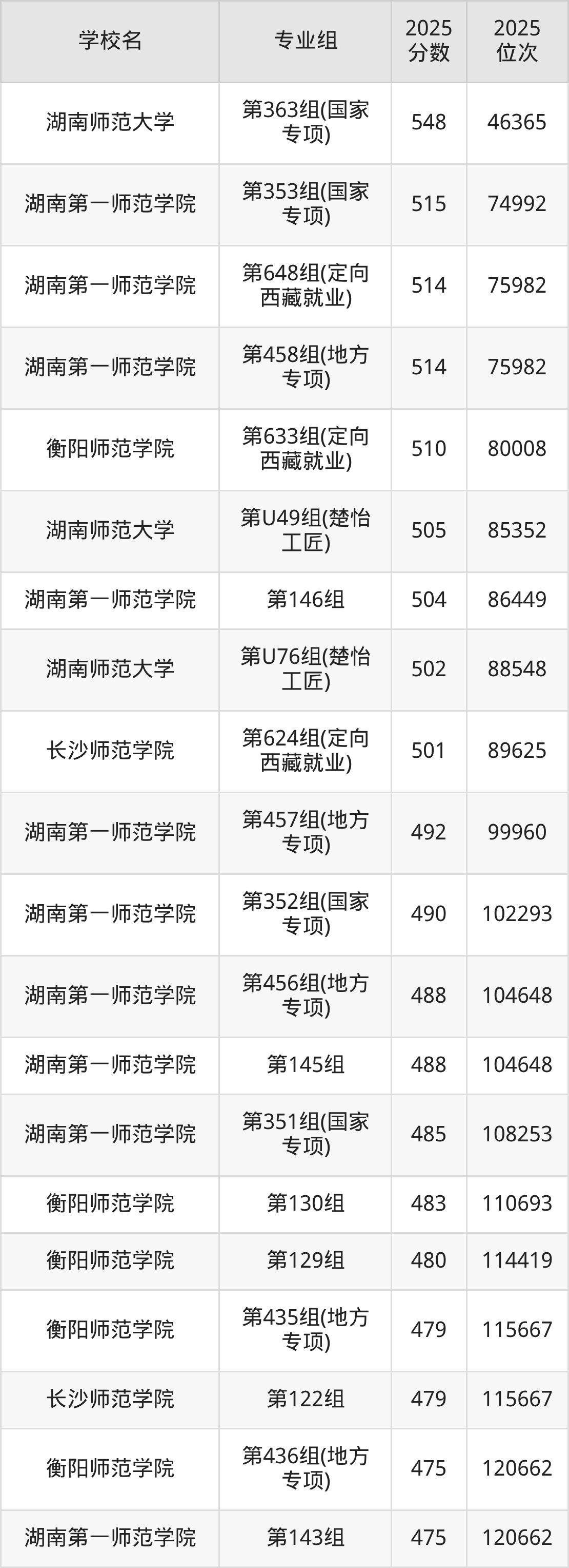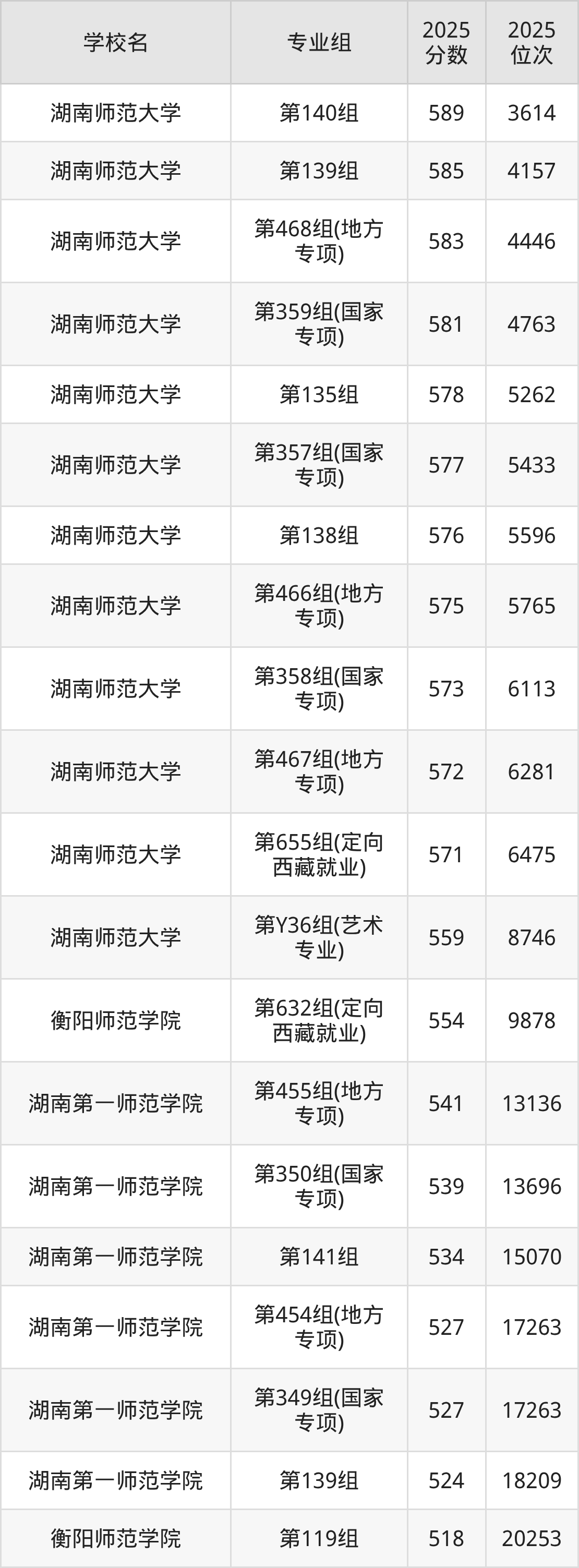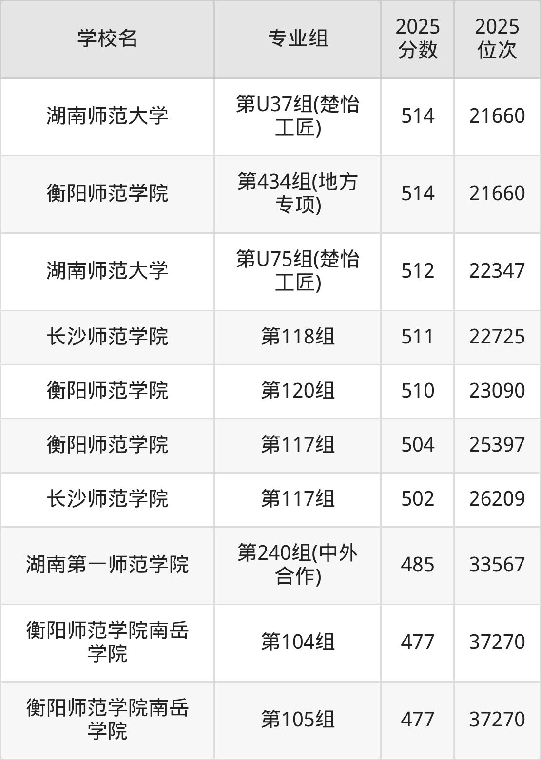 按照2025年湖南省所有师范类院校在省内录取分数线高低排名,为大家整理出了湖南所有师范类院校名单如下。