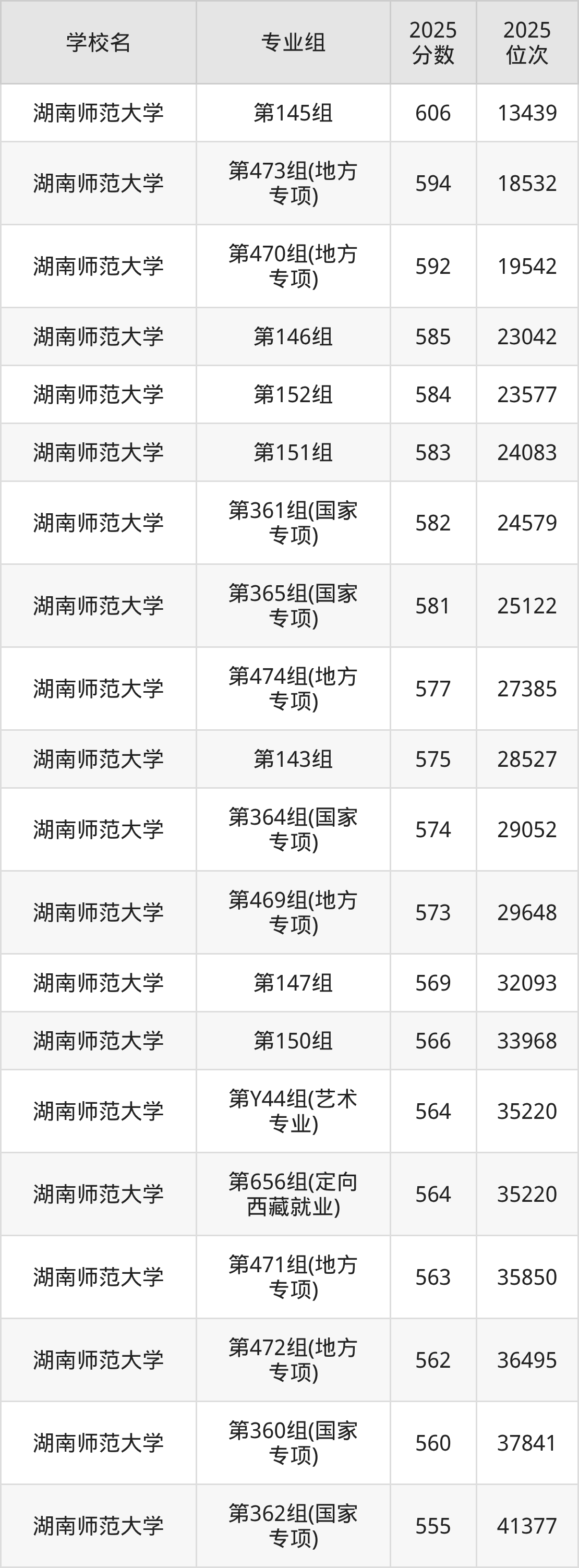 物理类最难考、收分最高的是:湖南师范大学,2025年学校的第145组最低分606分,对应排位13439名;历史类最难考、收分最高的是:湖南师范大学,2025年学校的第140组最低分589分,对应排位3614名。