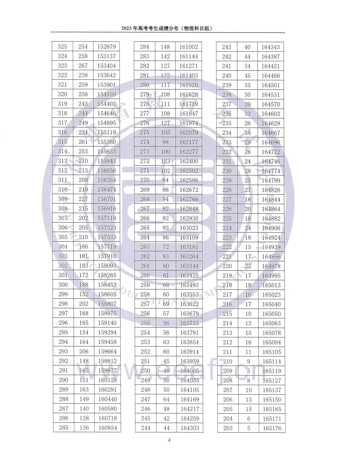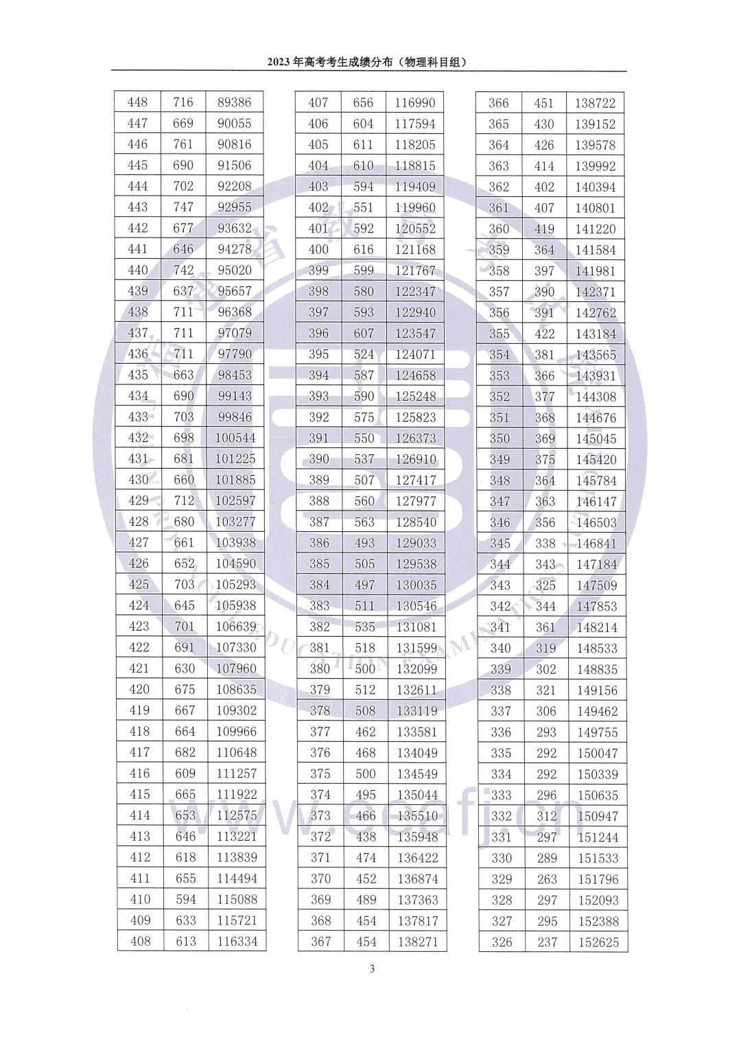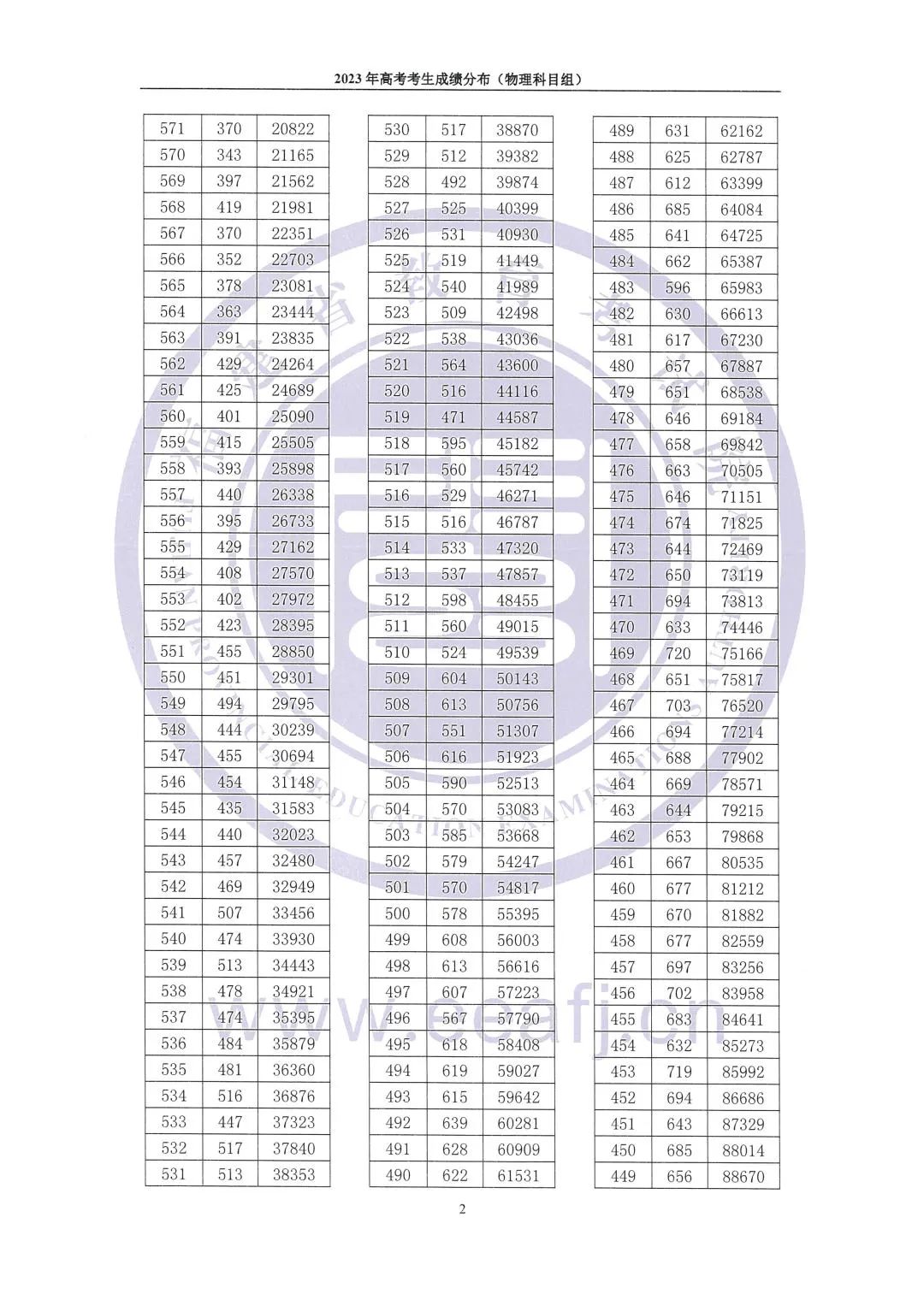 1、福建物理类高考一分一段表