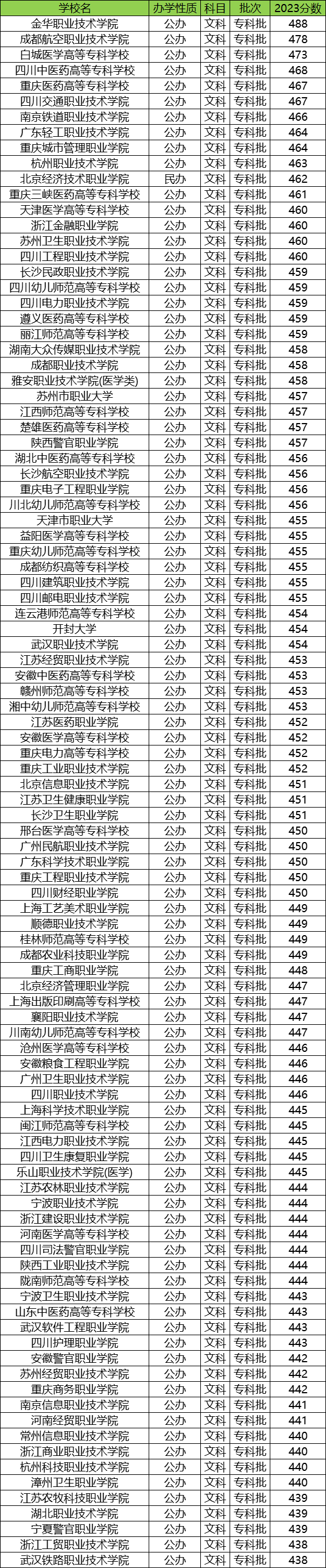 本文篇幅有限,只能列举文科、理科分数最高的100所专科学校,各位可以在圆梦志愿APP查看全国能上的专科学校。