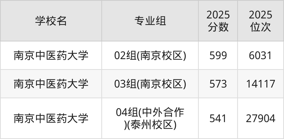 江苏省所有中医药院校2025年录取分数线一览表(前11院校专业组):