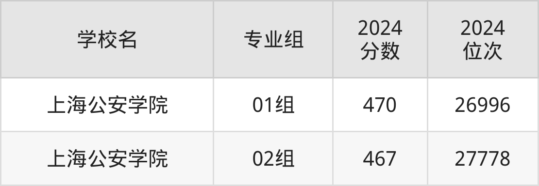 上海市所有公安警察院校2024年录取分数线一览表(前2院校专业组):