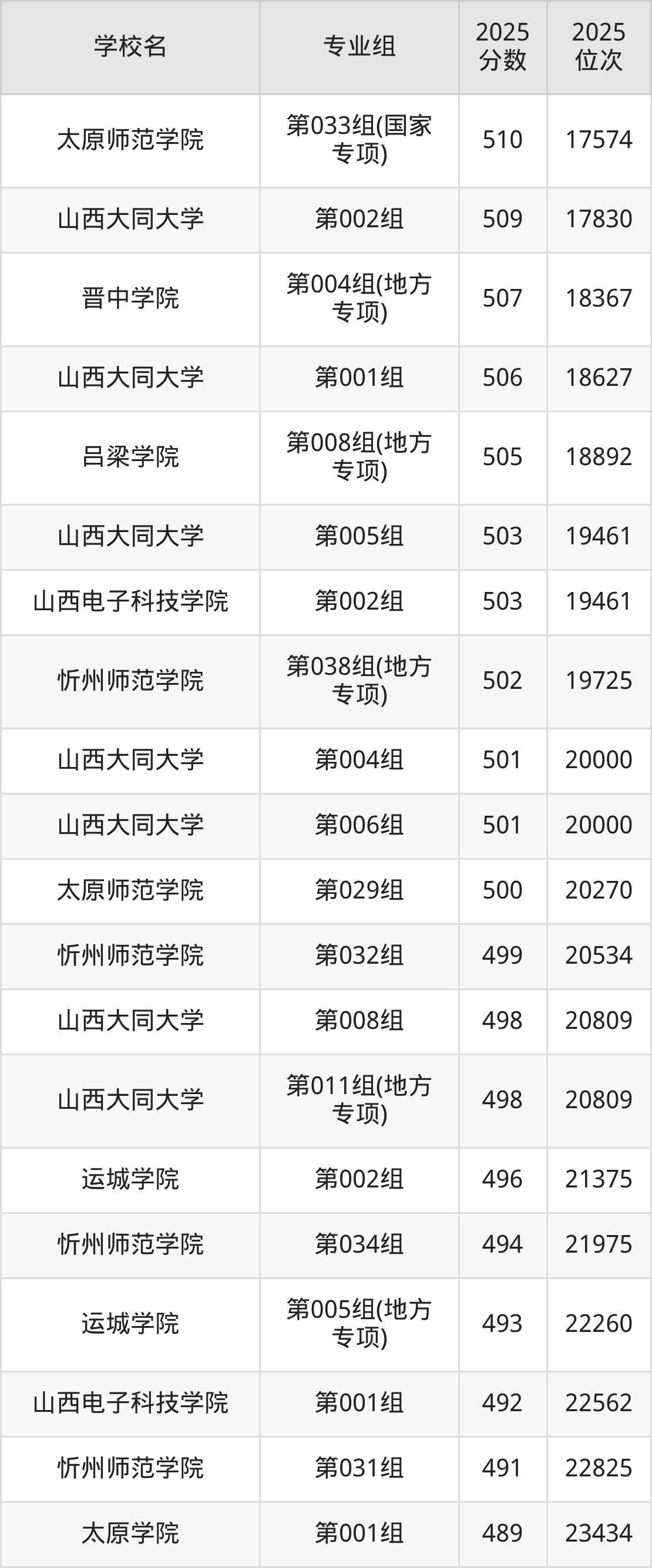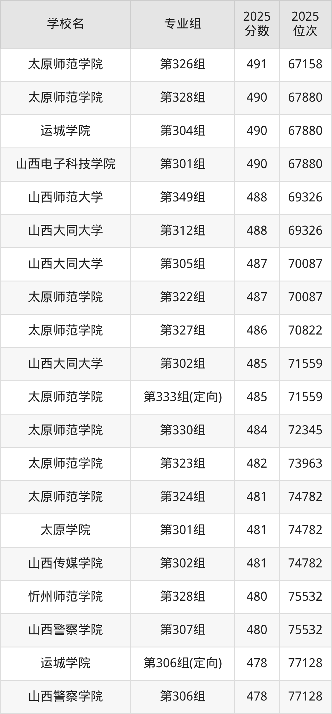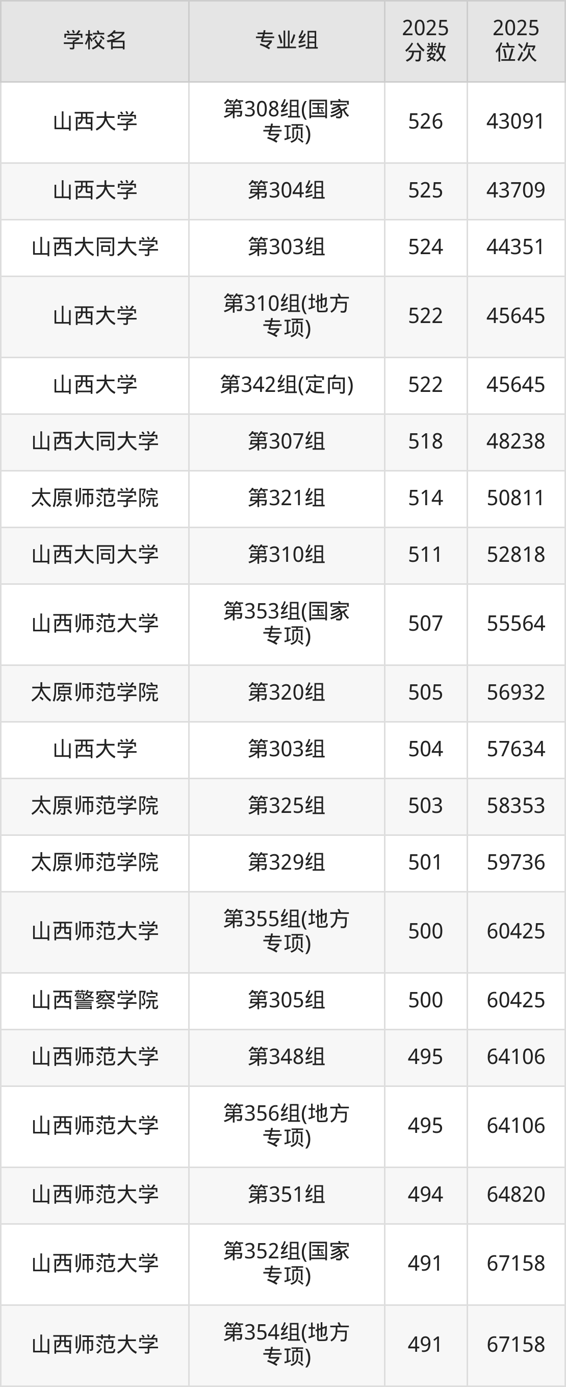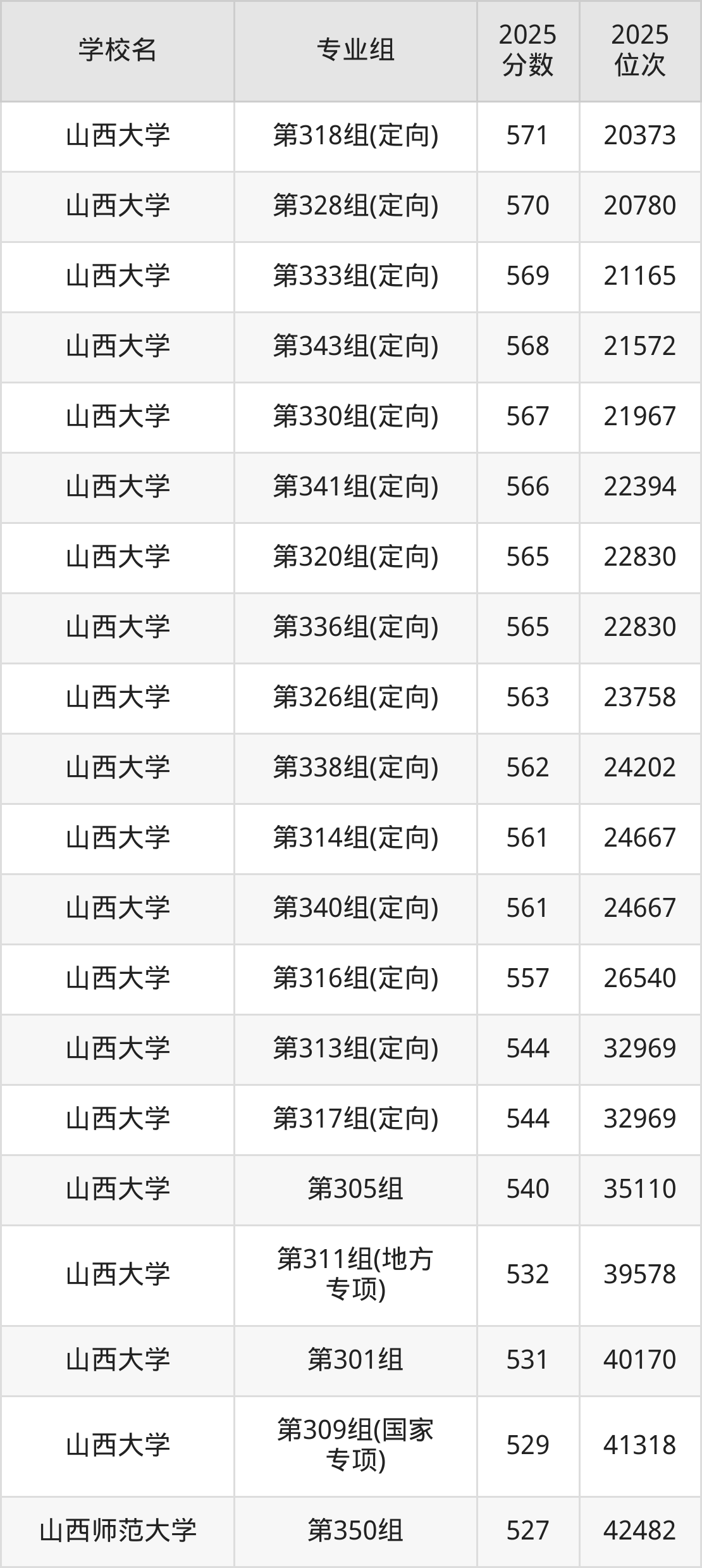 山西省所有文科院校2025年录取分数线一览表(前100院校专业组):