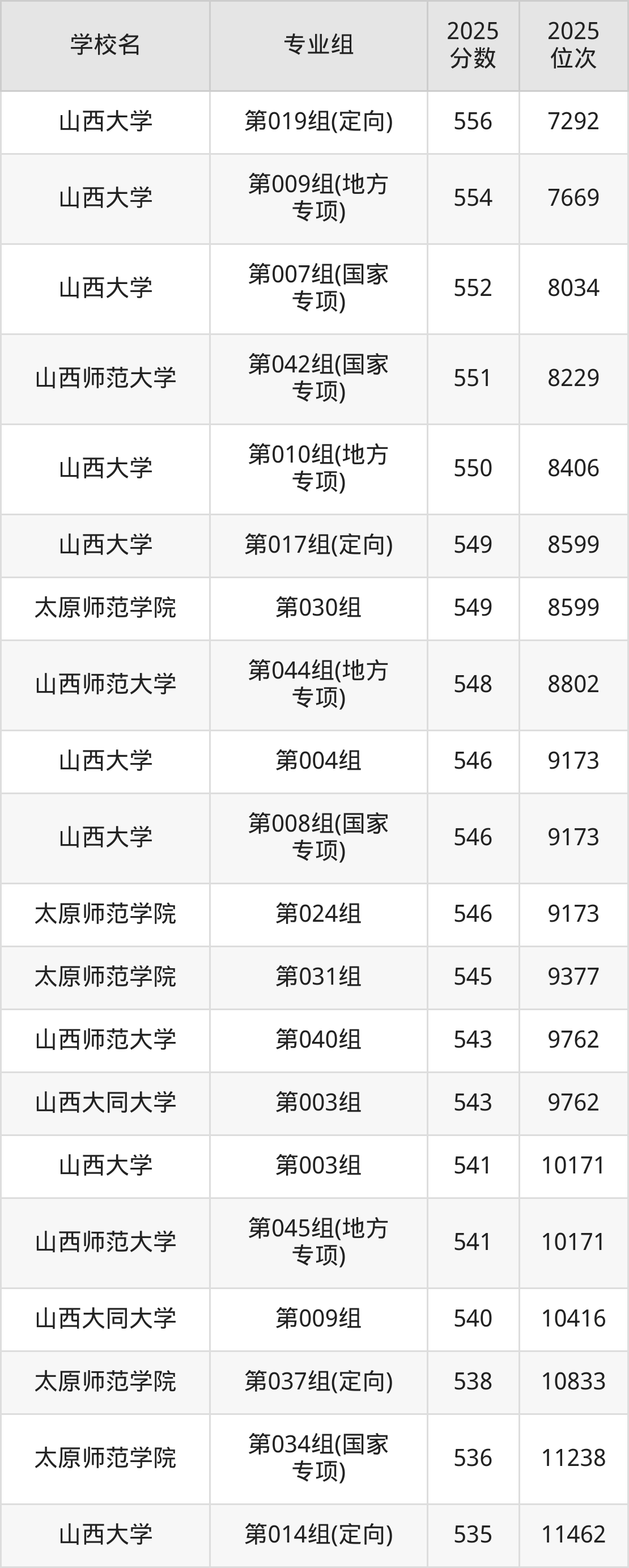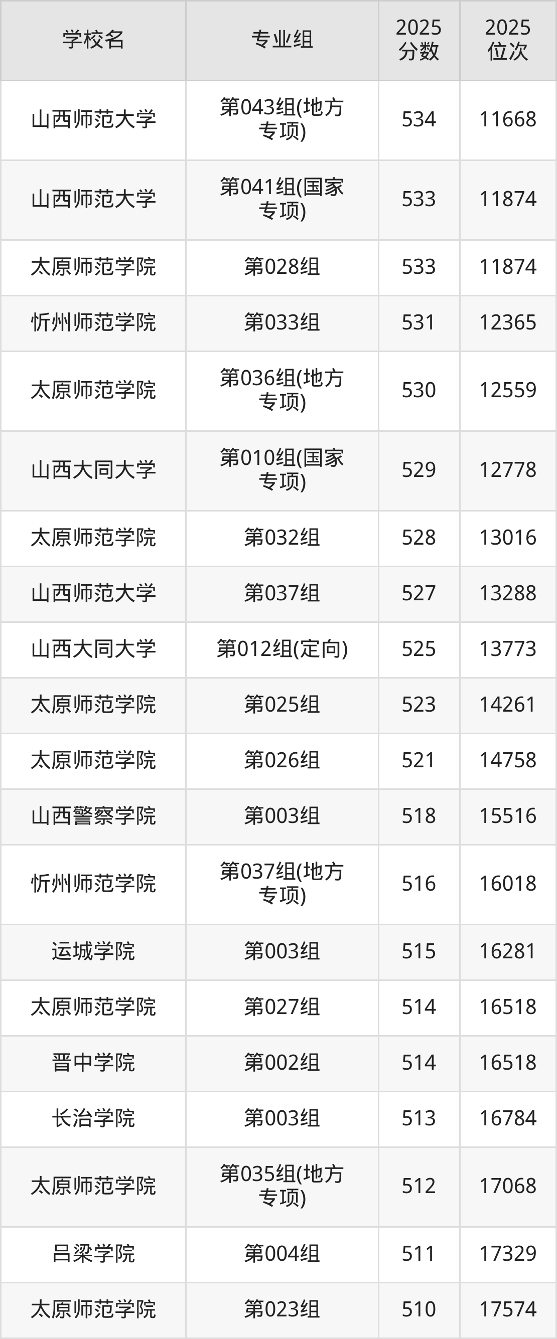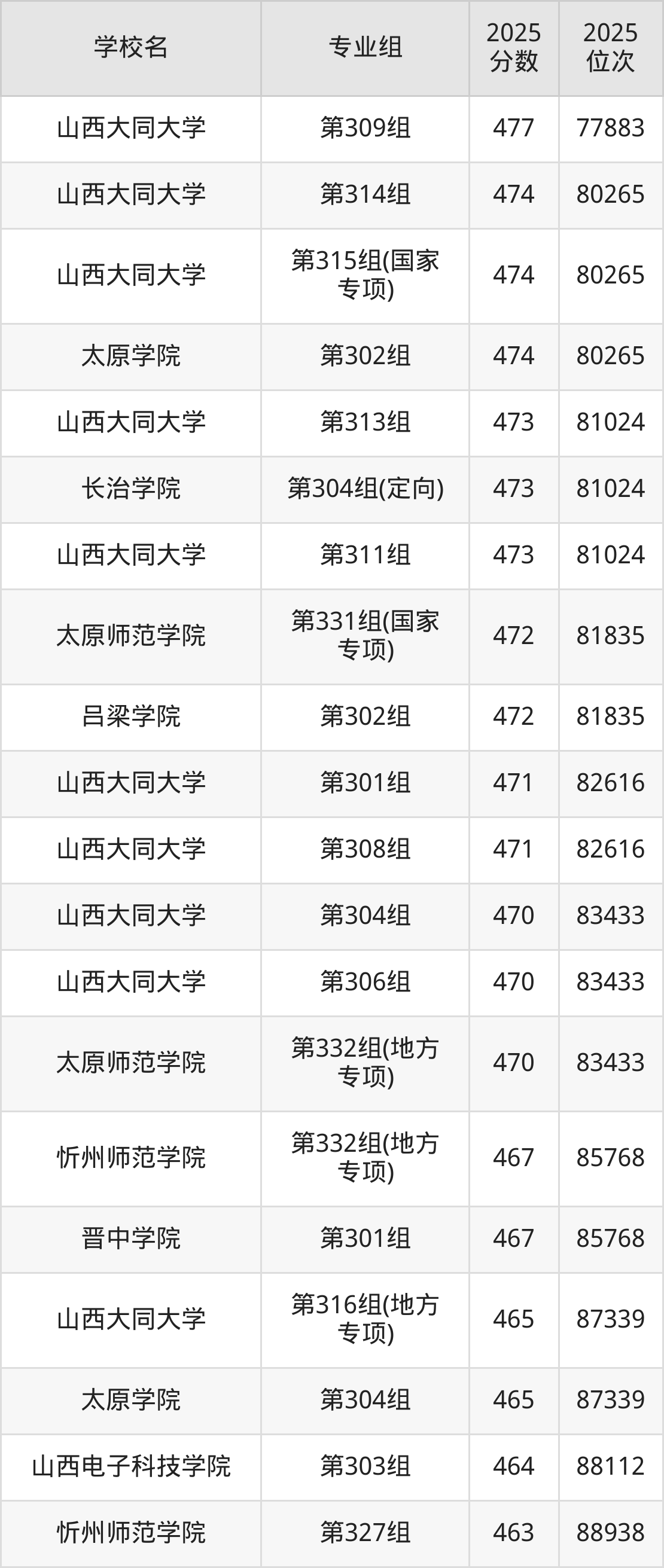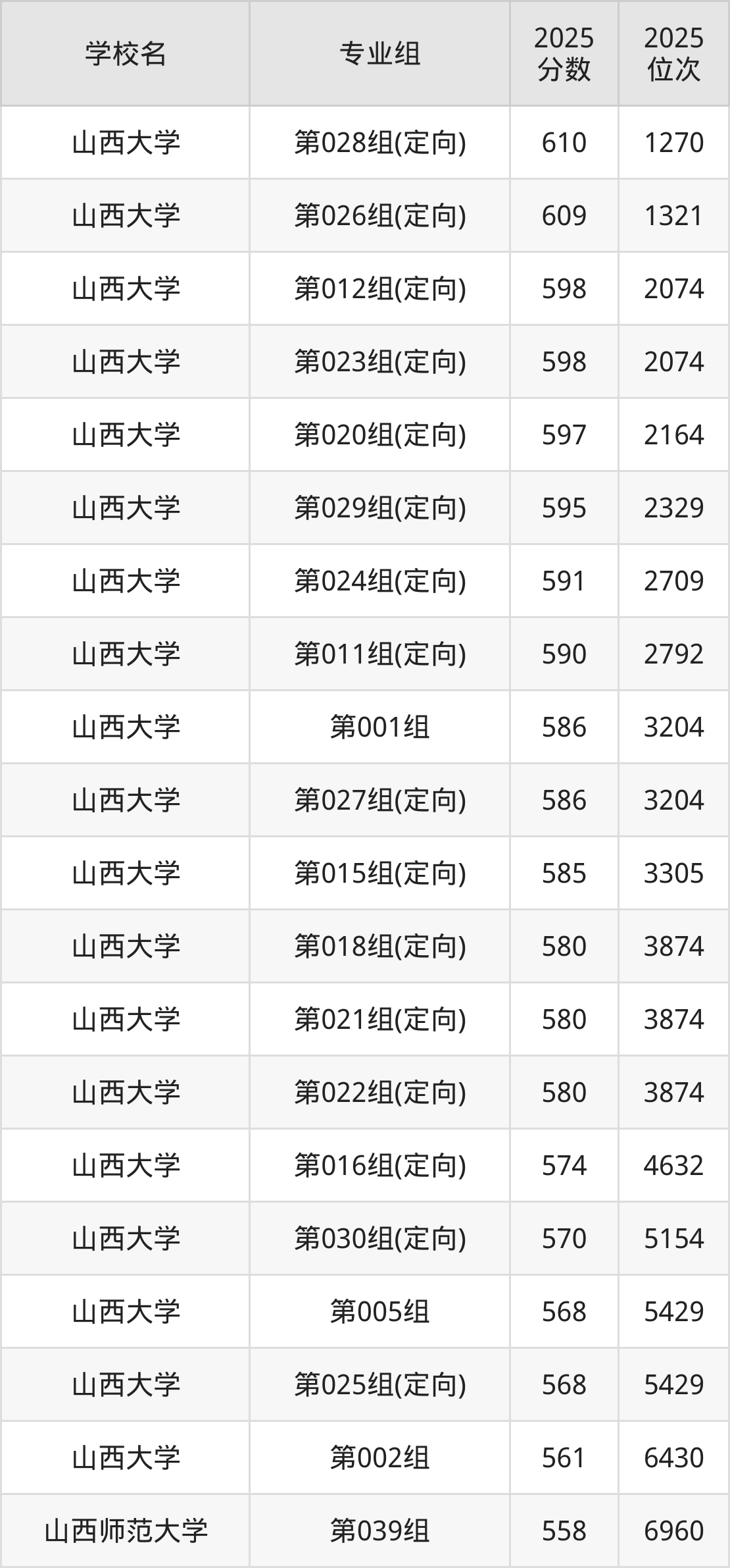 山西省所有文科院校2025年录取分数线一览表(前100院校专业组):