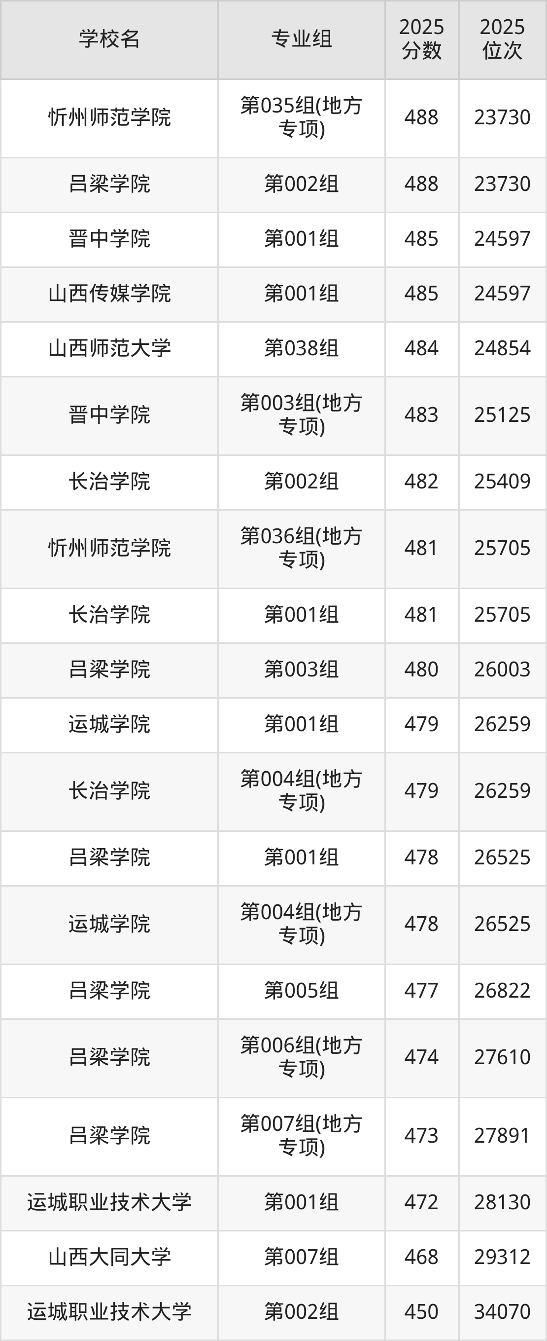 按照2025年山西省所有文科院校在省内录取分数线高低排名,为大家整理出了山西所有文科院校名单如下。