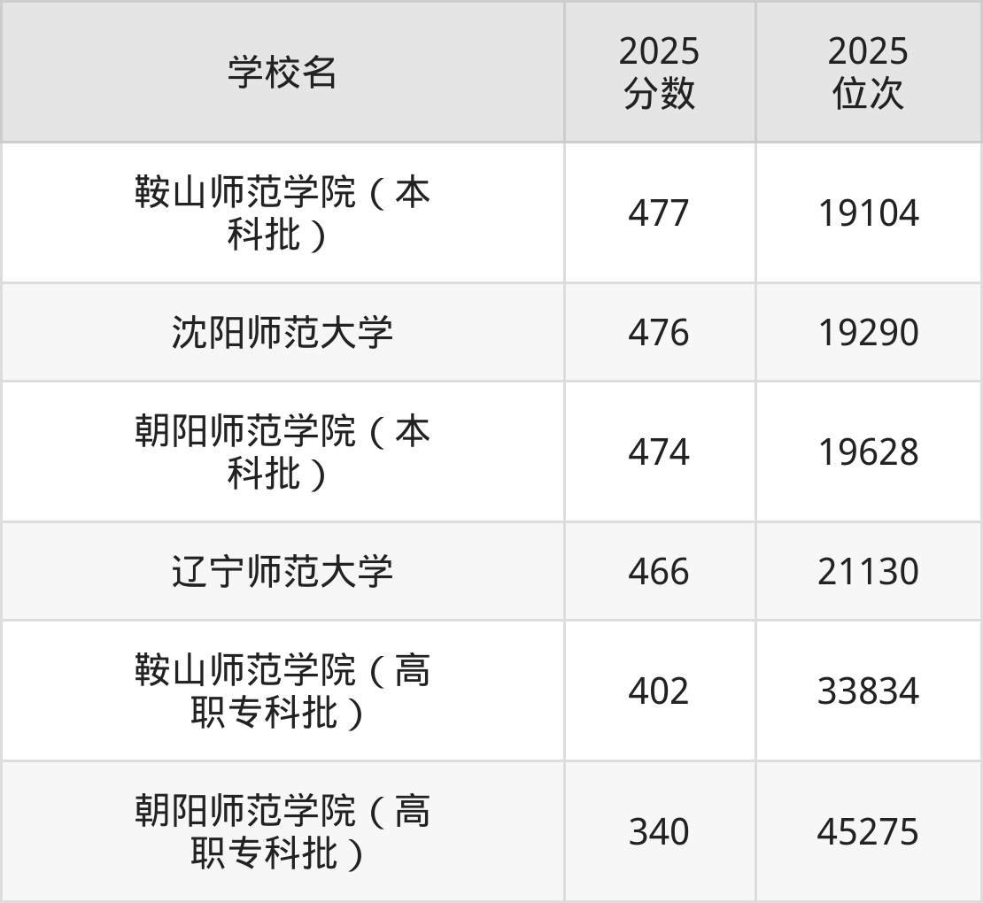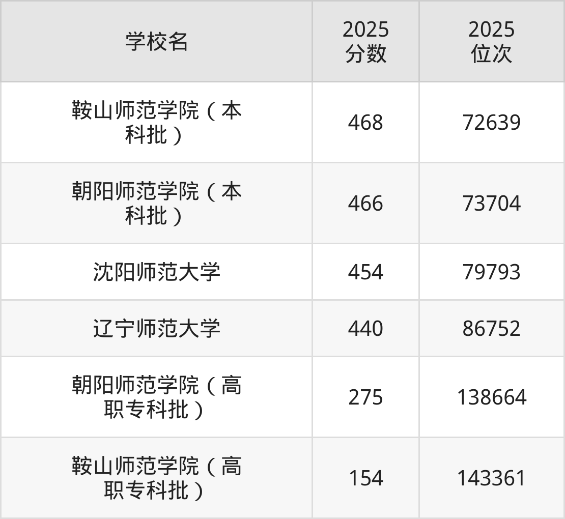 辽宁省所有师范类院校2025年录取分数线一览表(前6院校):