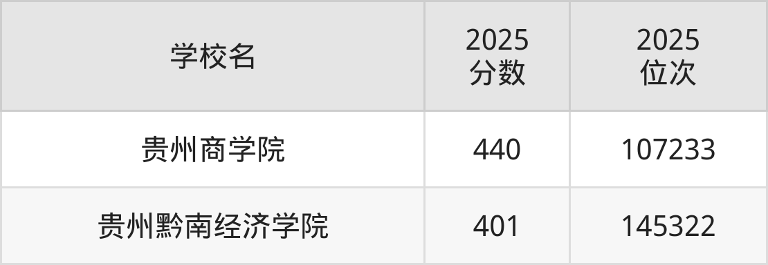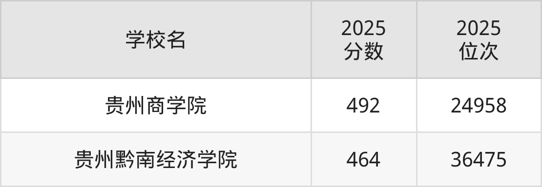 按照2025年贵州省所有二本财经院校在省内录取分数线高低排名,为大家整理出了贵州所有二本财经院校名单如下。