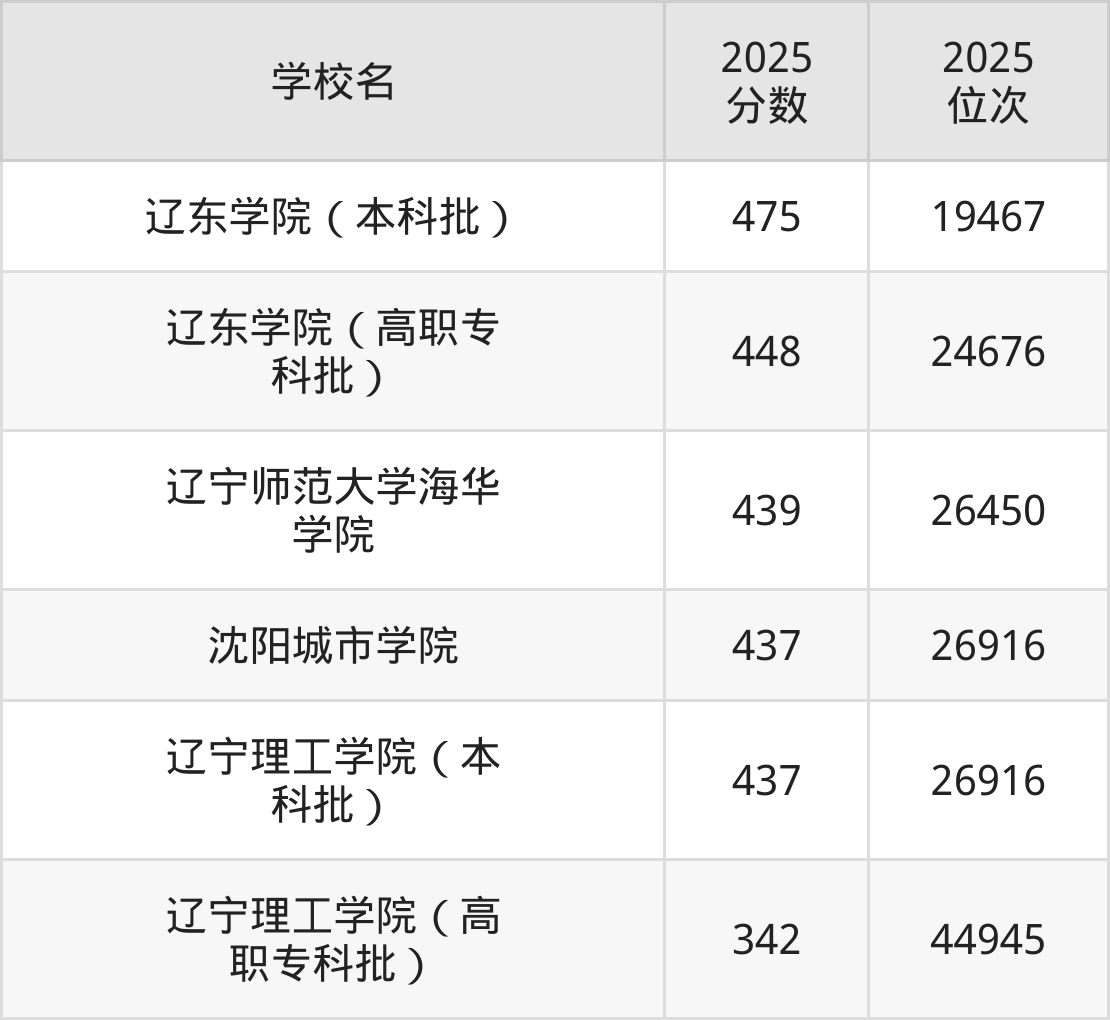 辽宁省所有二本综合院校2025年录取分数线一览表(前7院校):