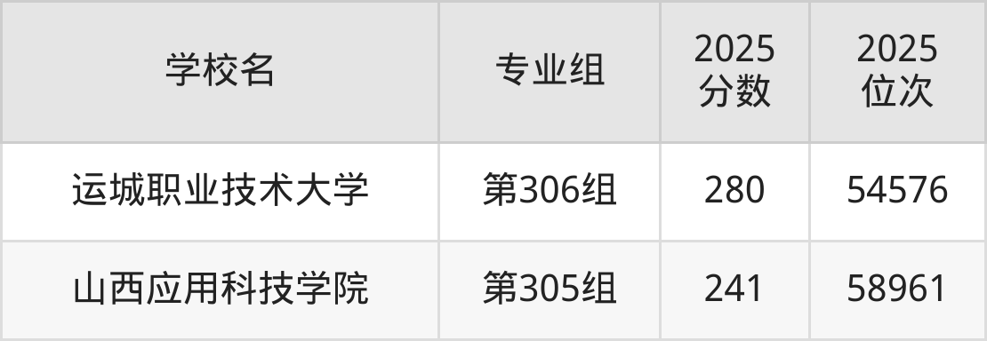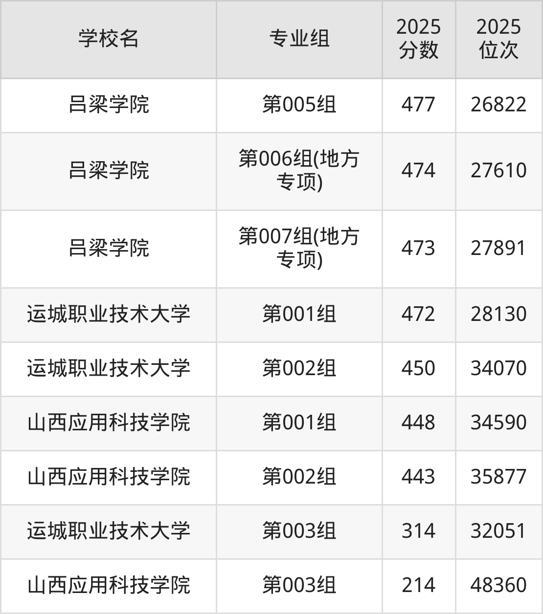 物理类最好考、收分最低的是:山西应用科技学院,2025年第305组最低分241分,最低排名58961名;历史类最好考、收分最低的是:山西应用科技学院,2025年第003组最低分214分,最低排名48360名。