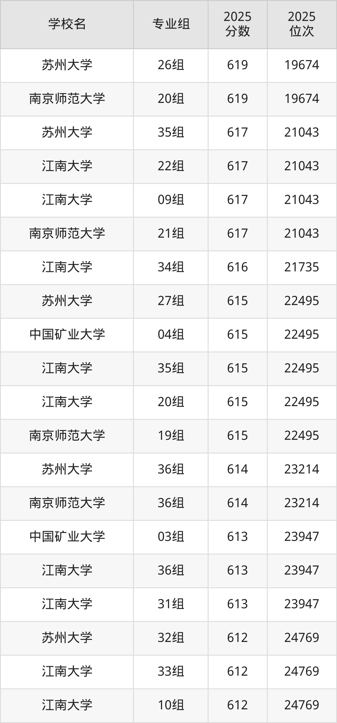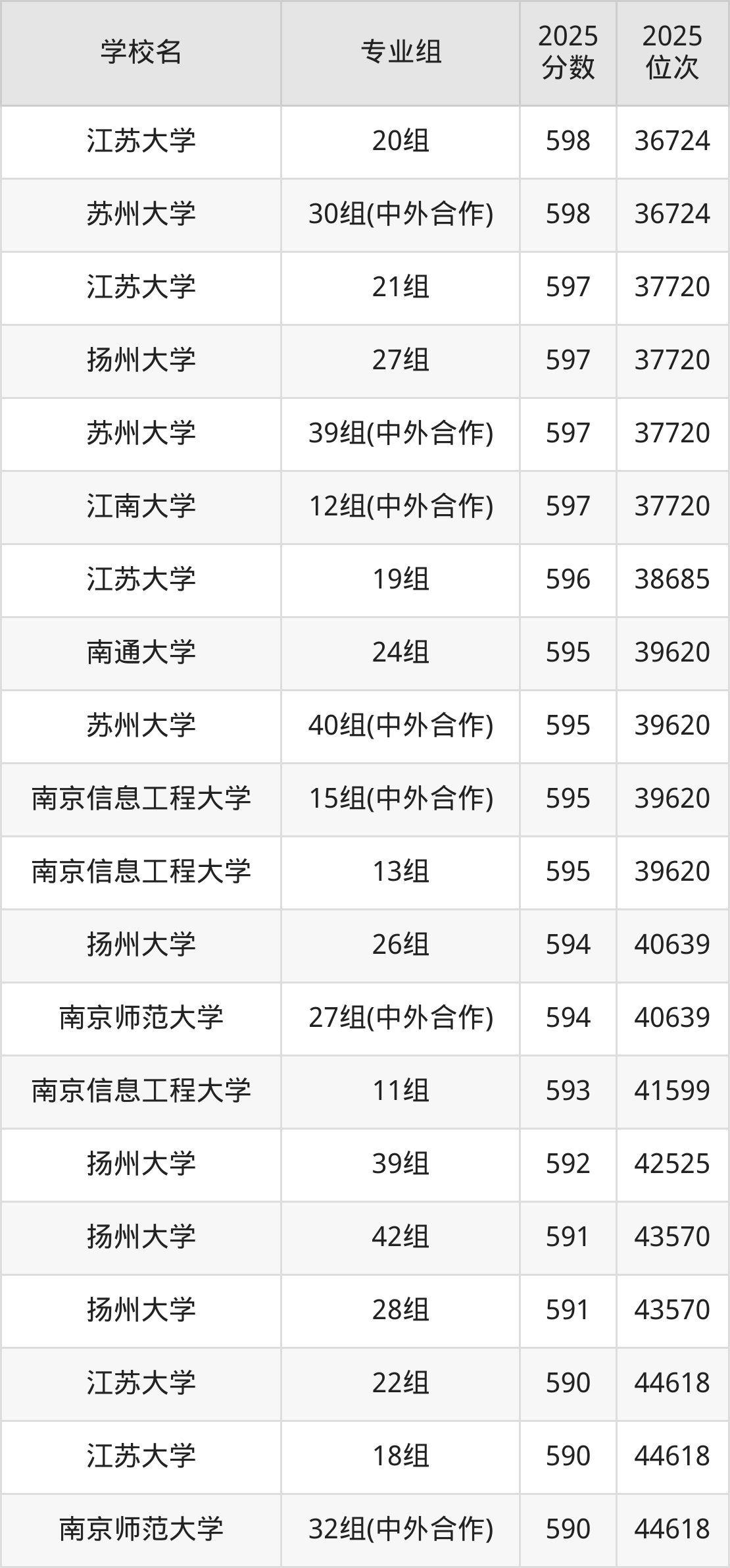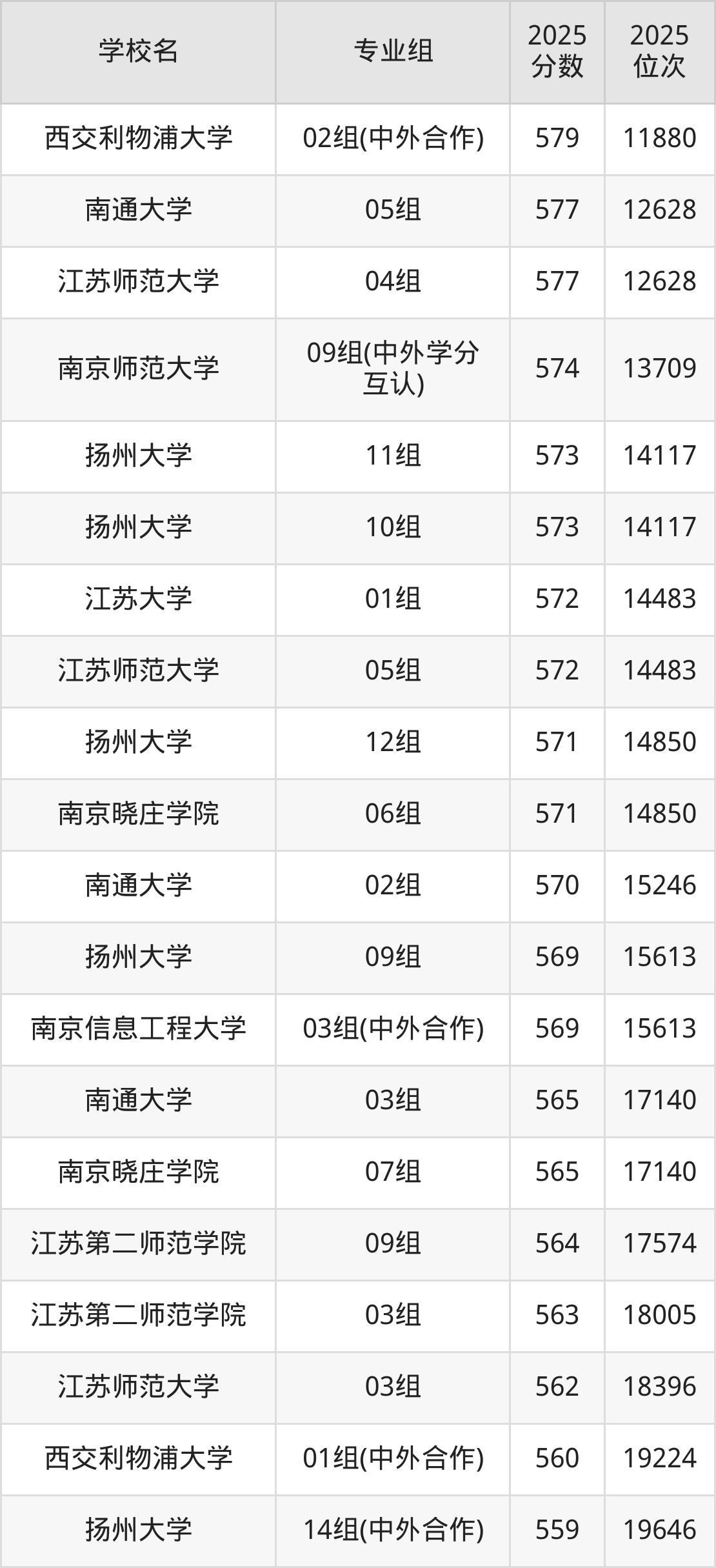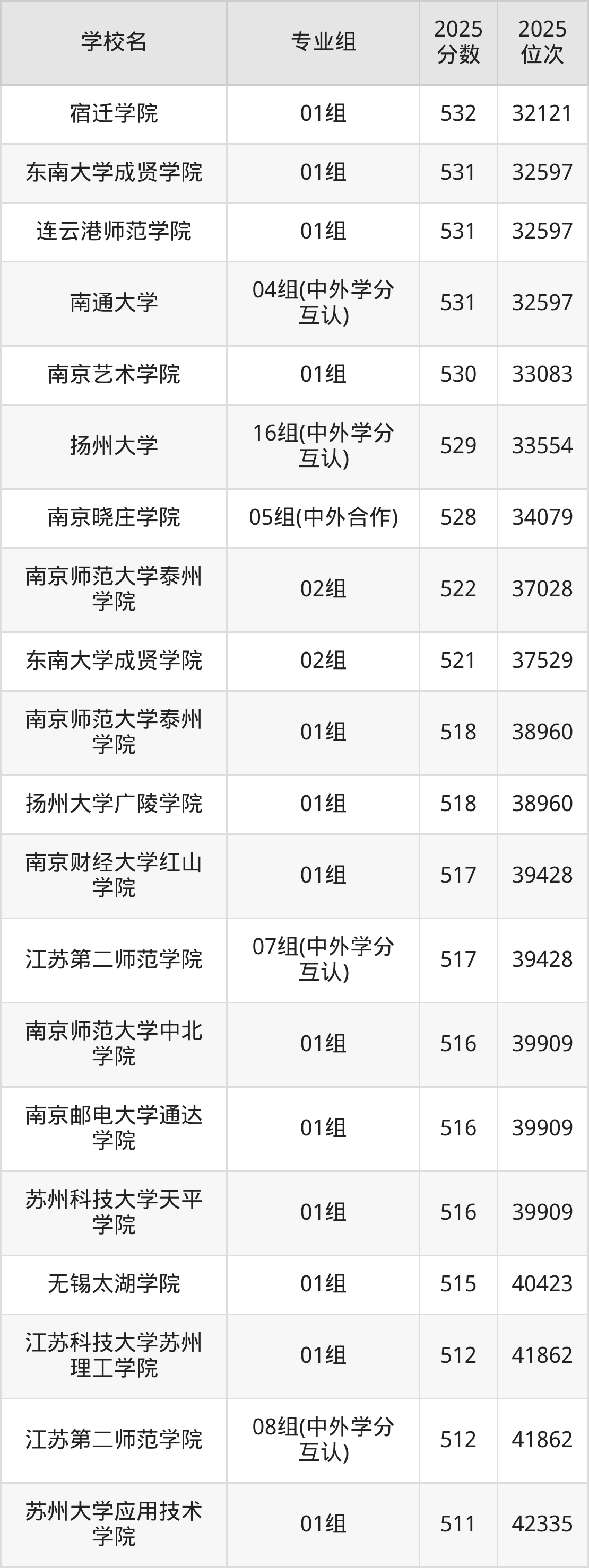 江苏省所有文科院校2025年录取分数线一览表(前100院校专业组):