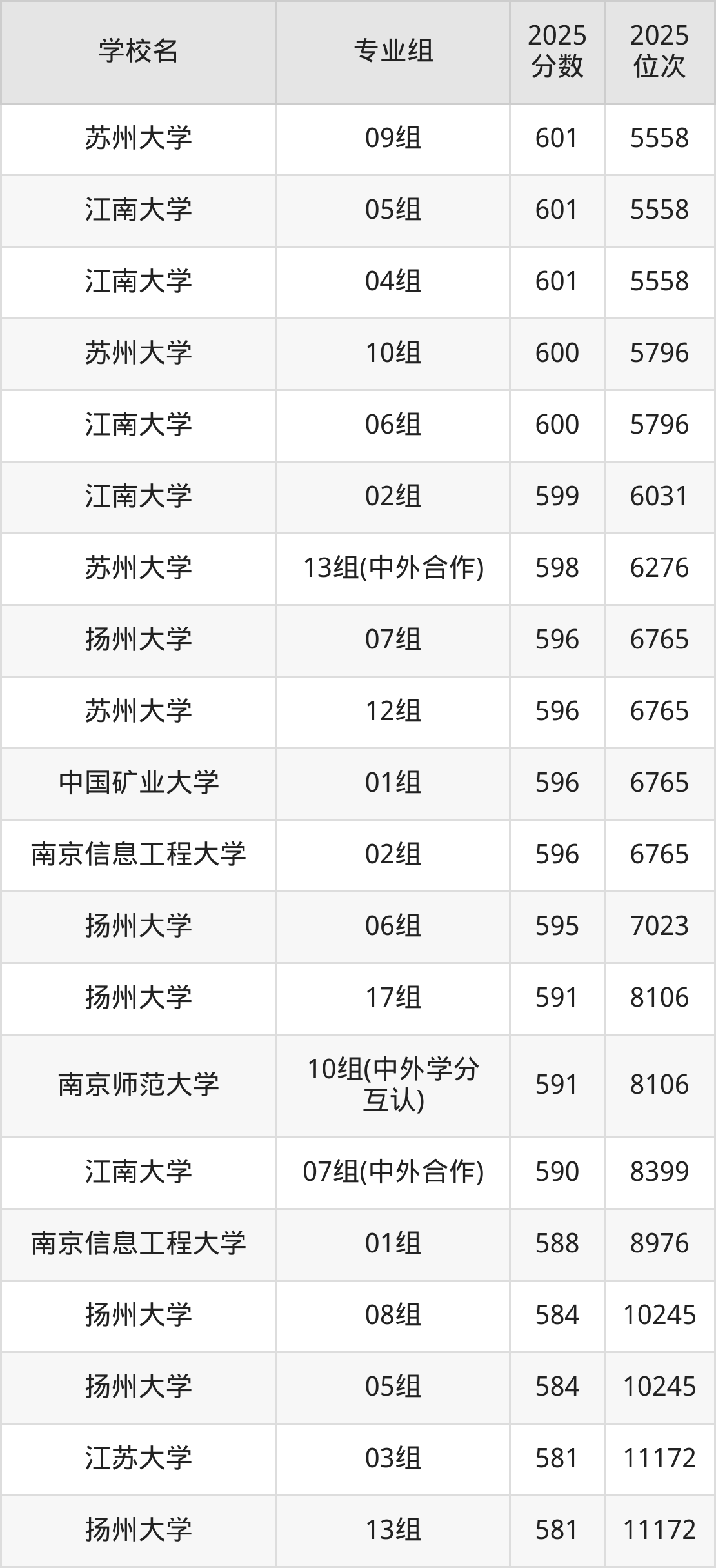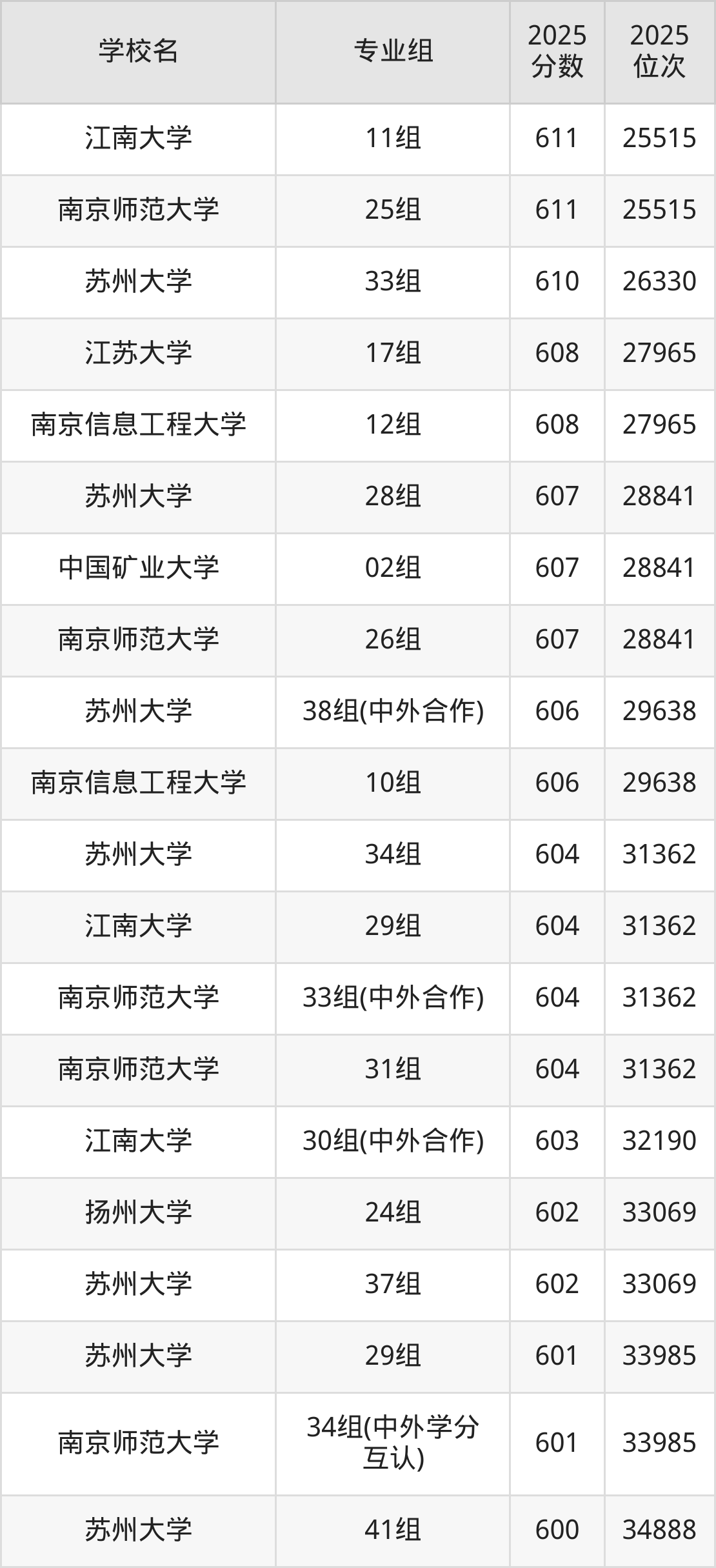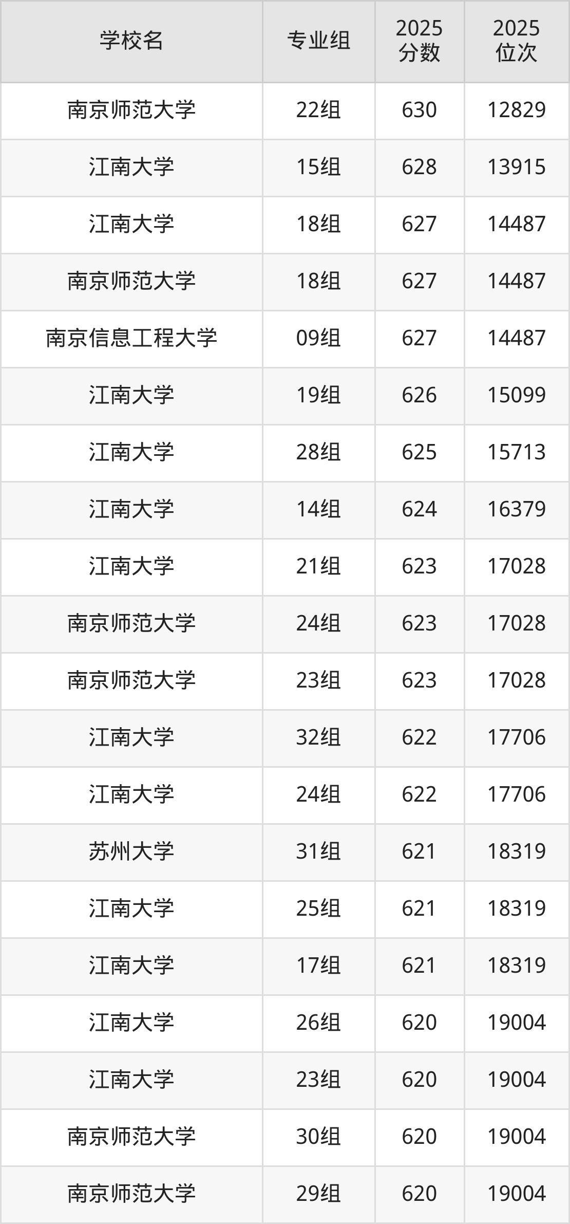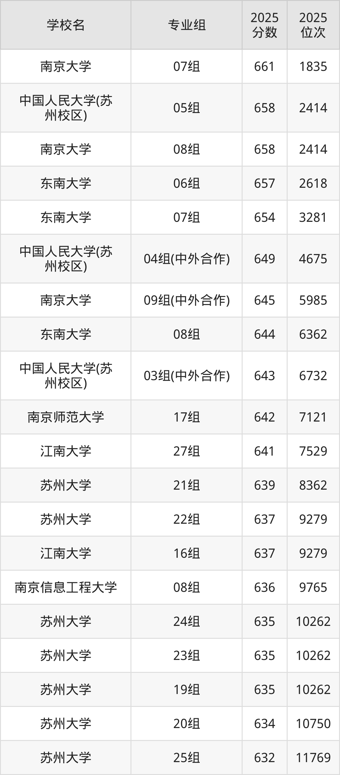 江苏省所有文科院校2025年录取分数线一览表(前100院校专业组):