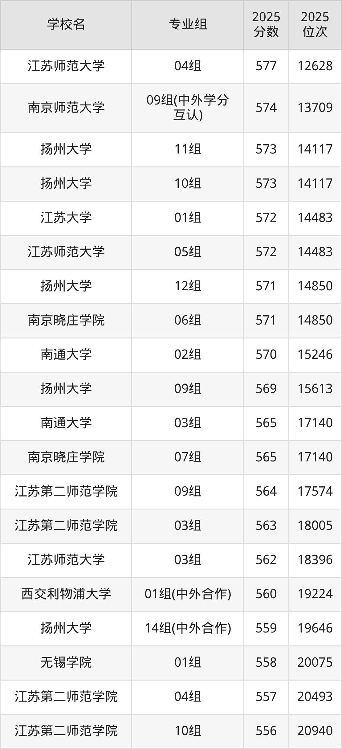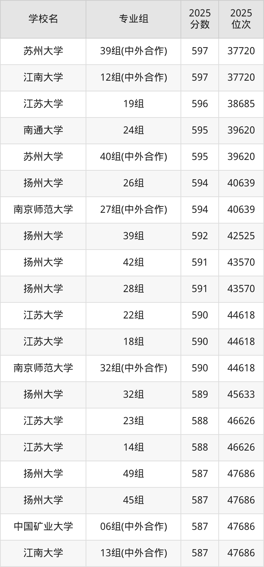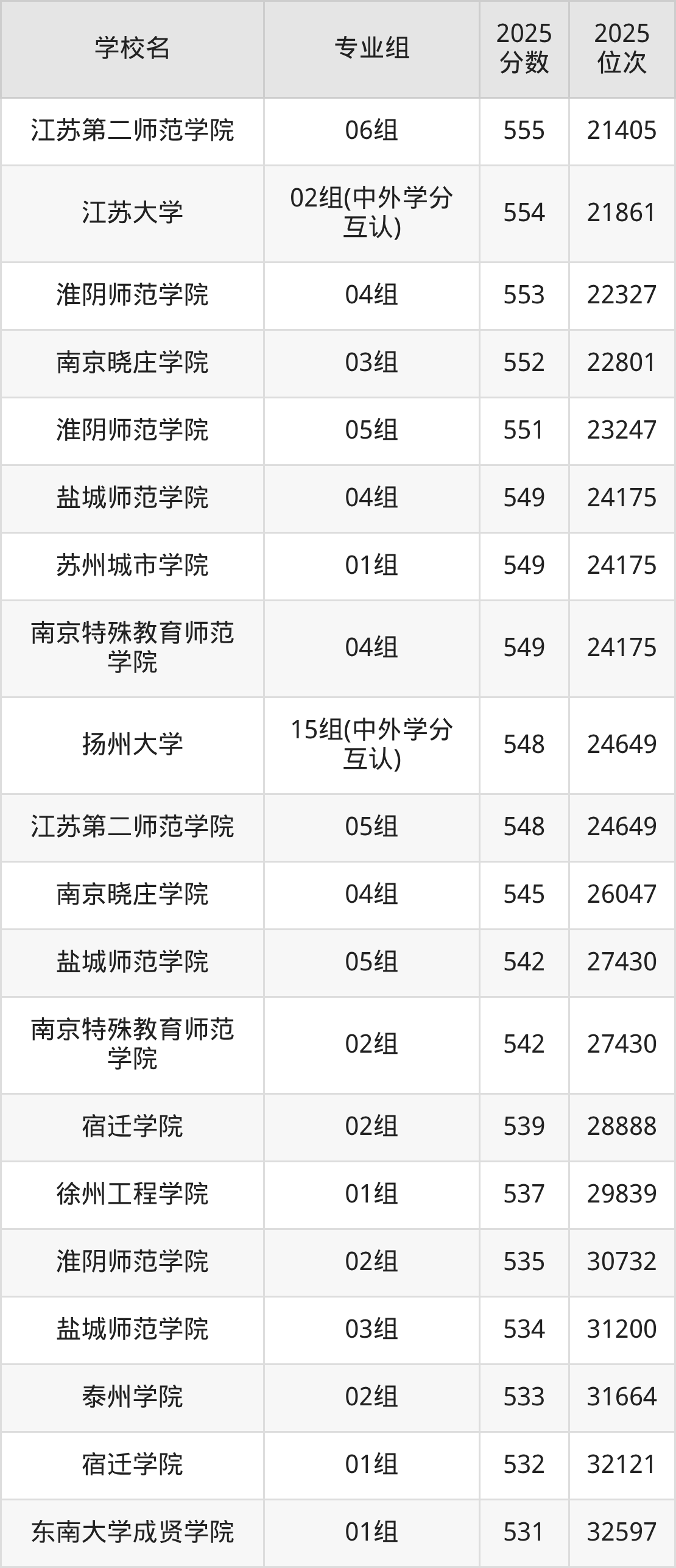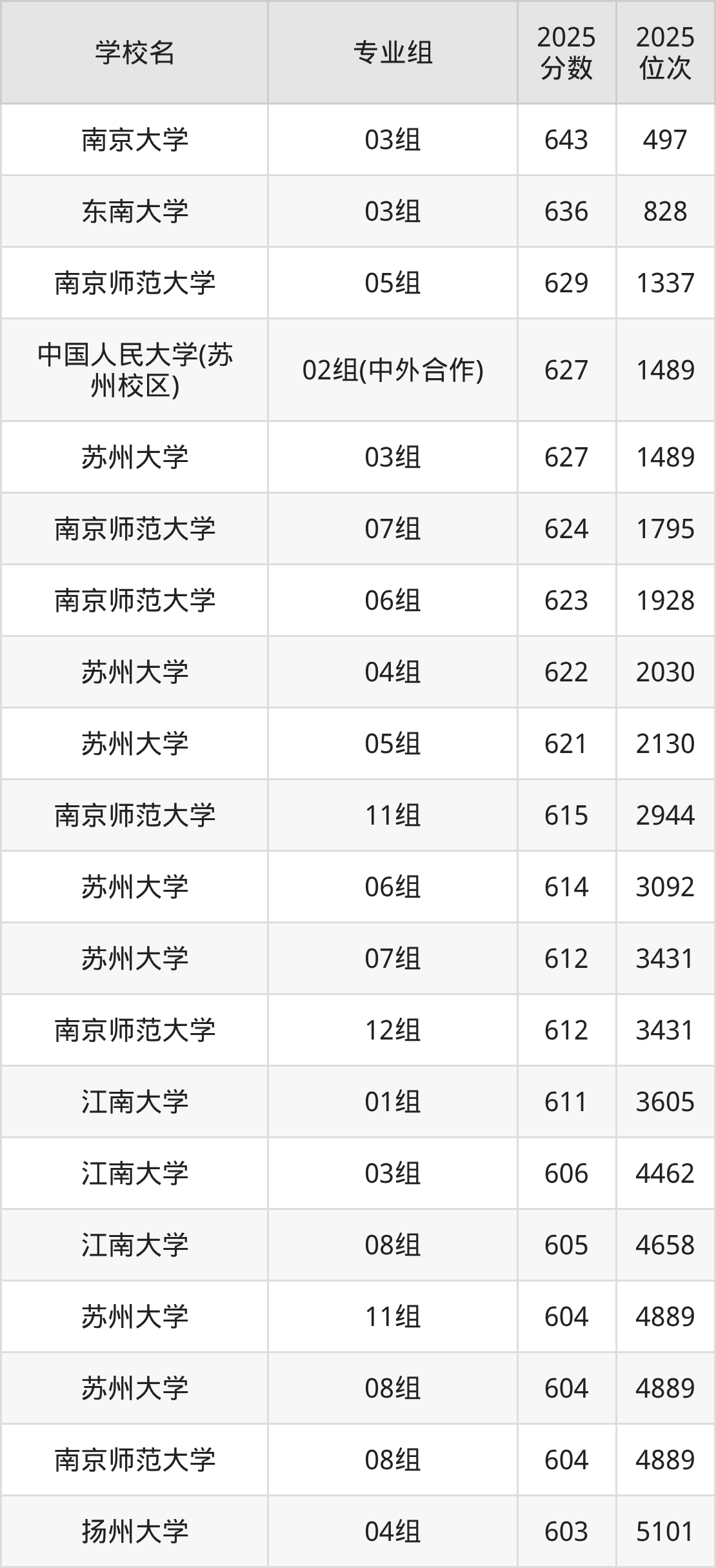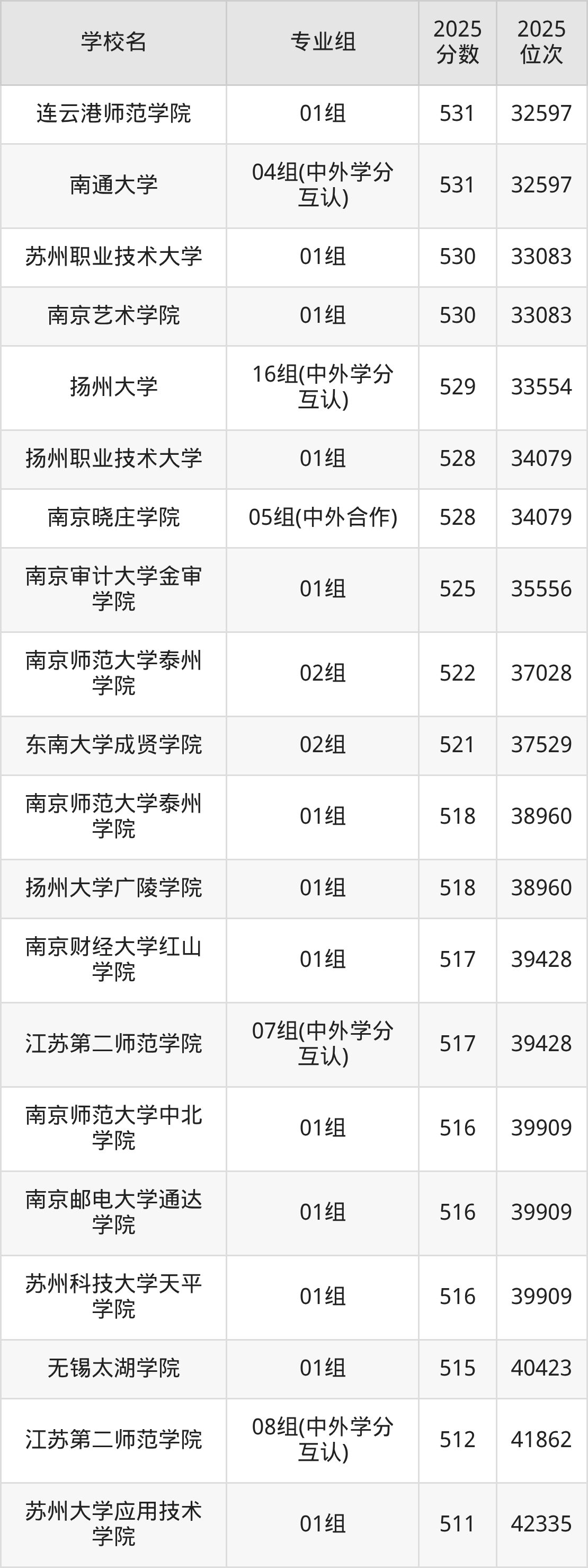 江苏省所有文科院校2025年录取分数线一览表:
