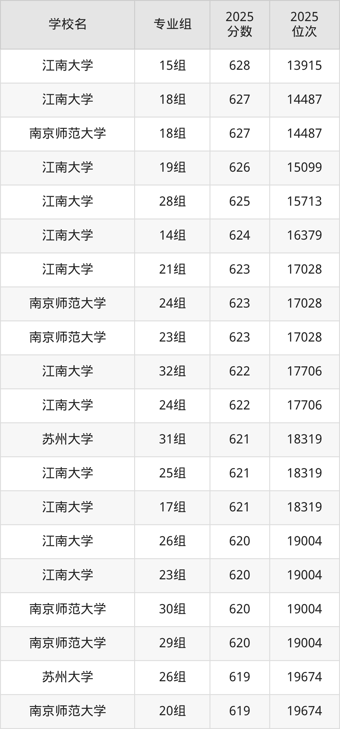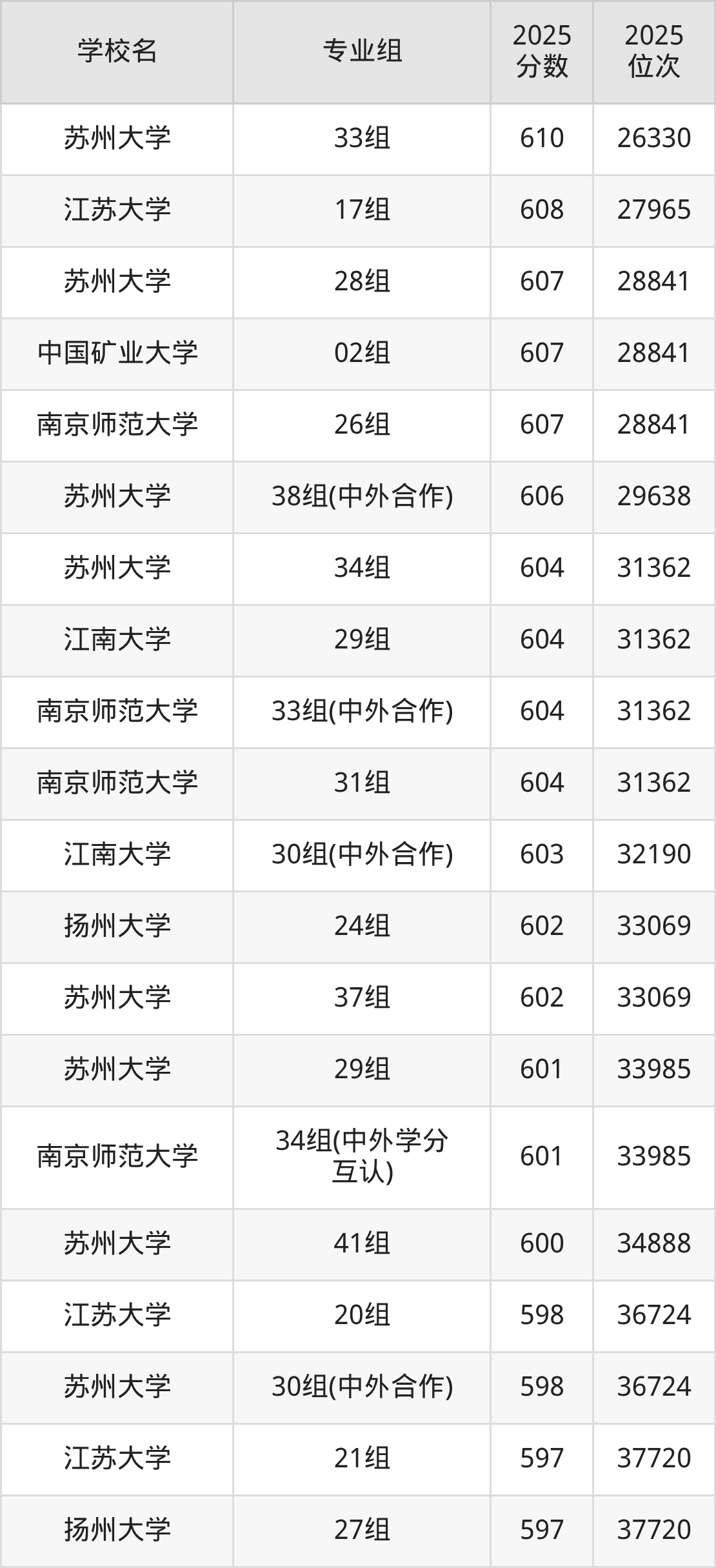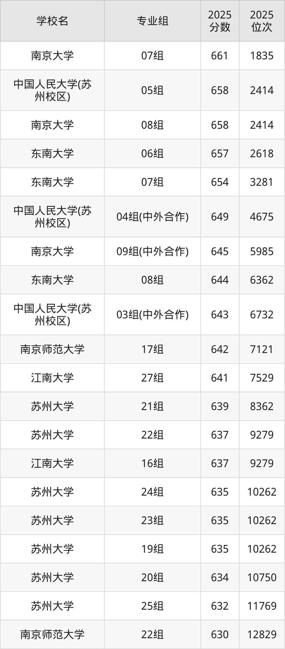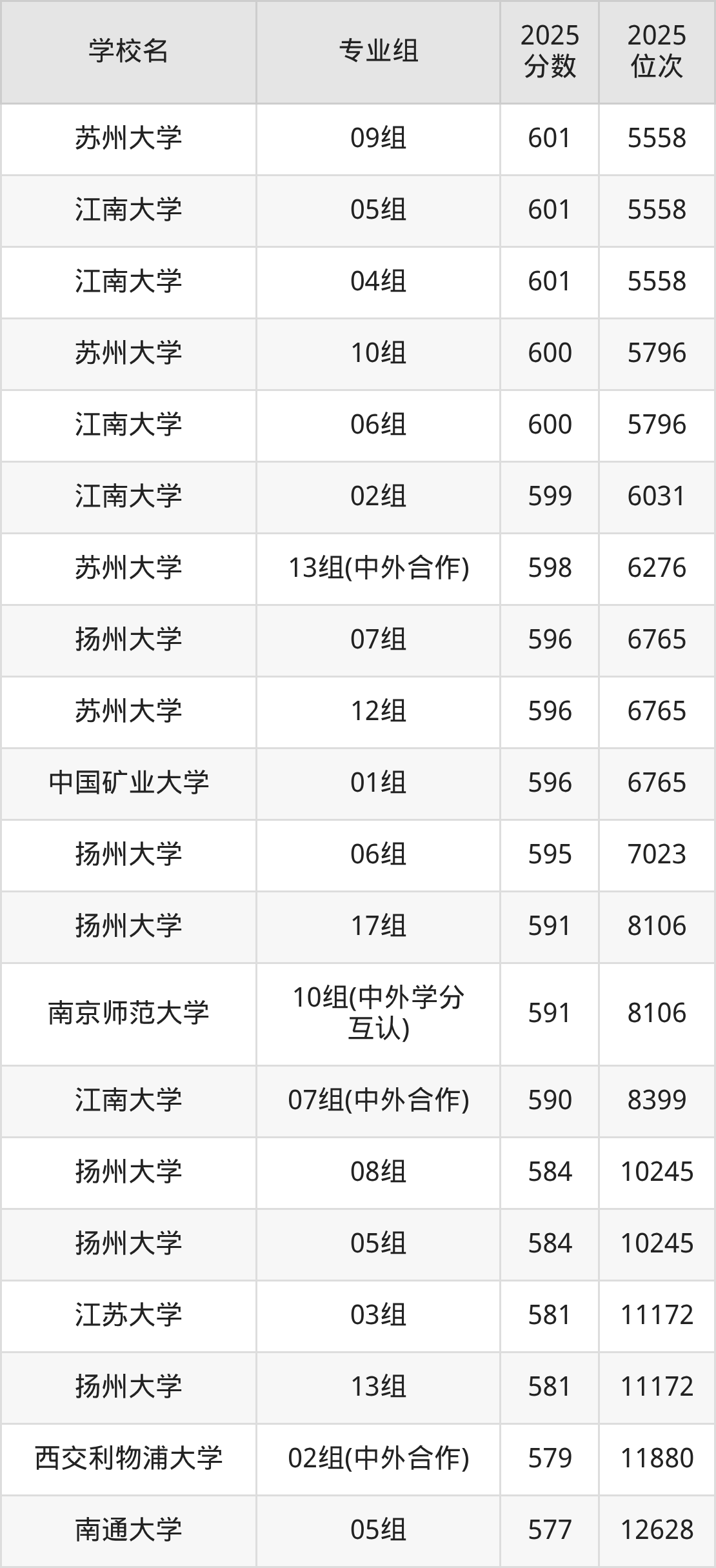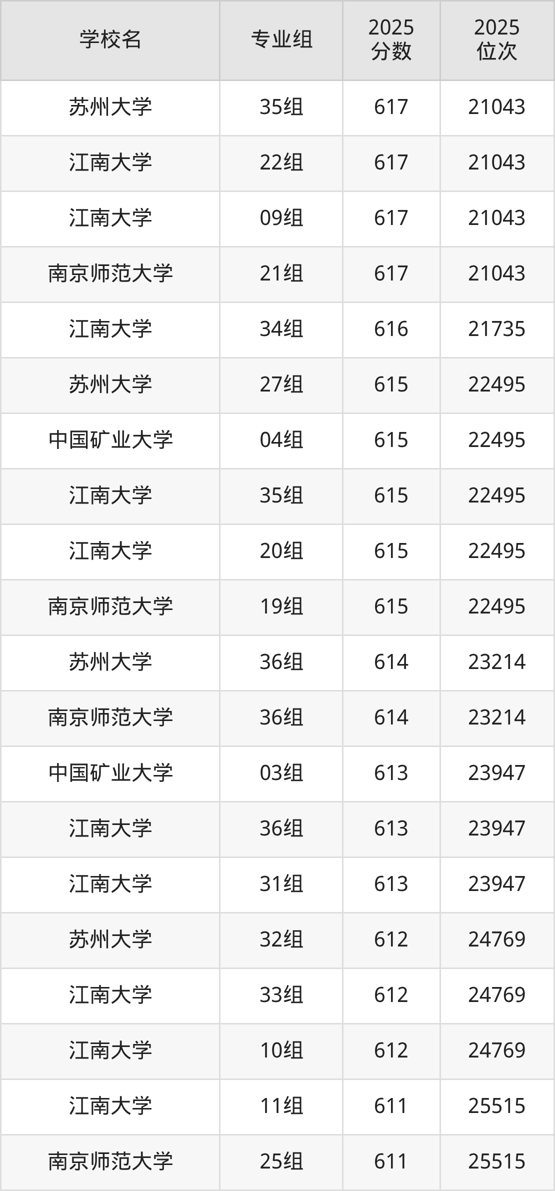 江苏省所有文科院校2025年录取分数线一览表: