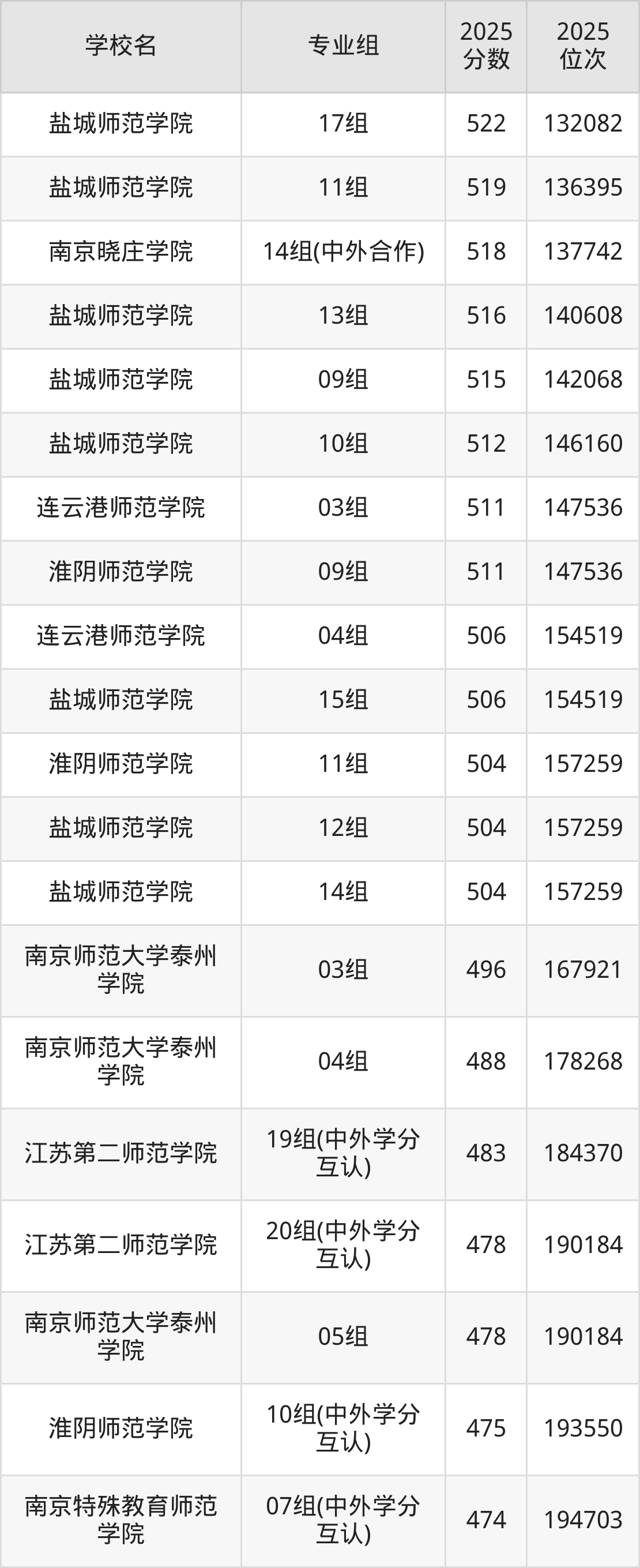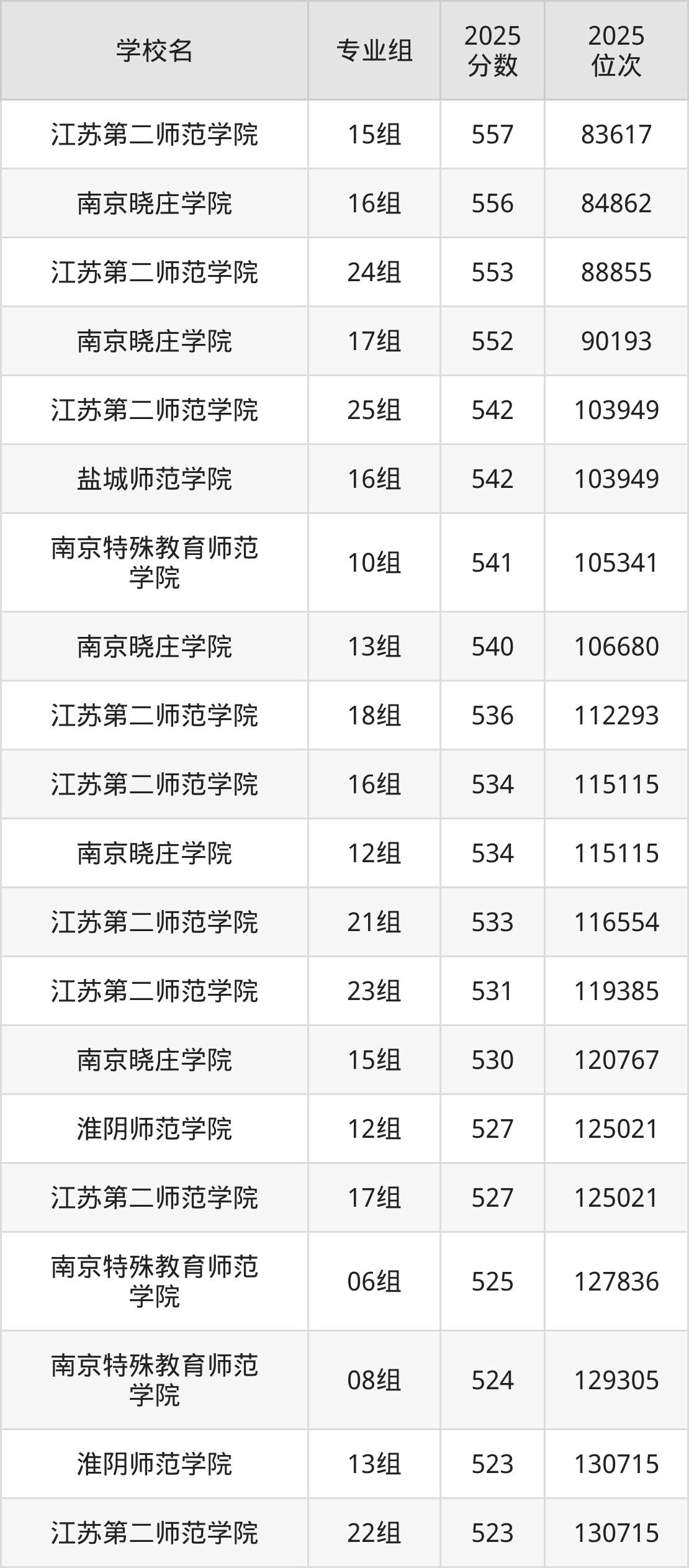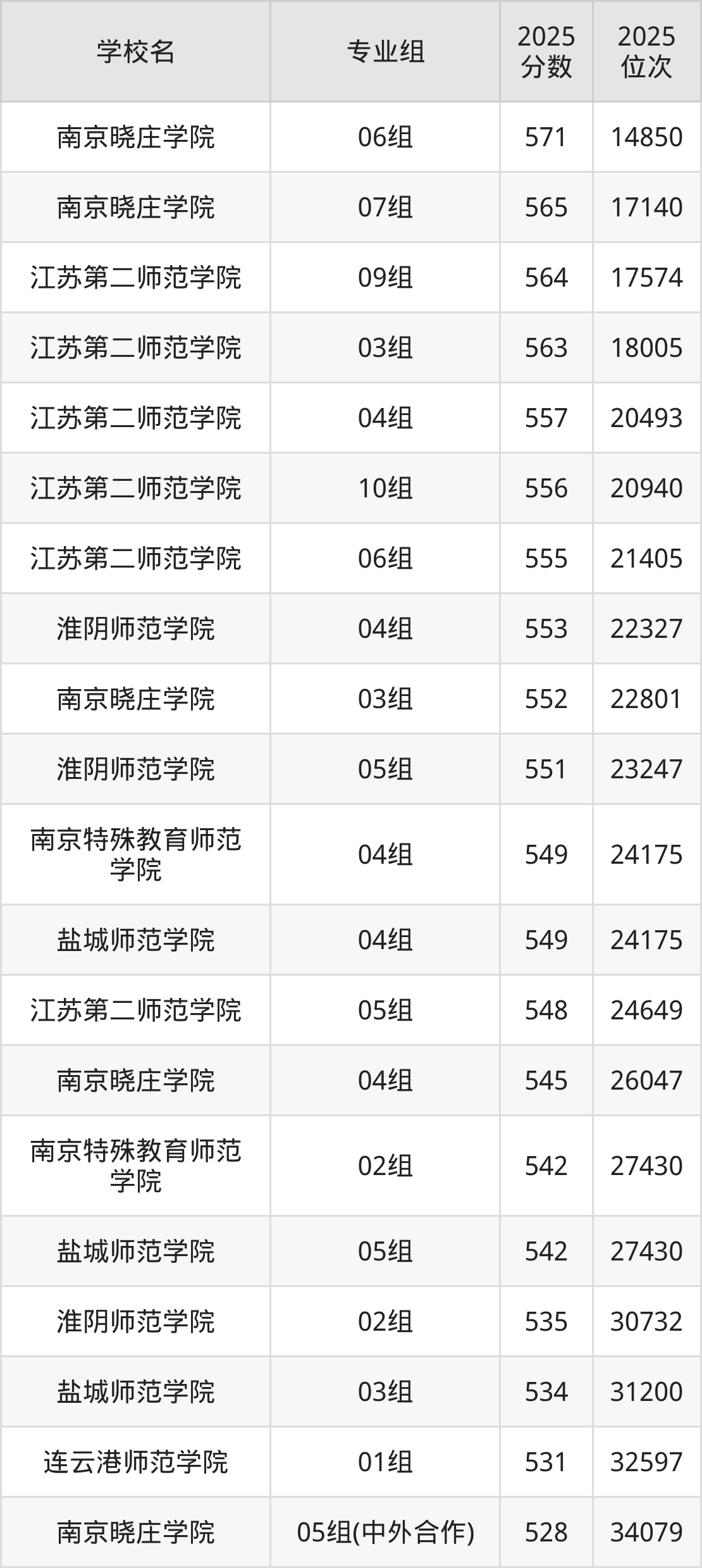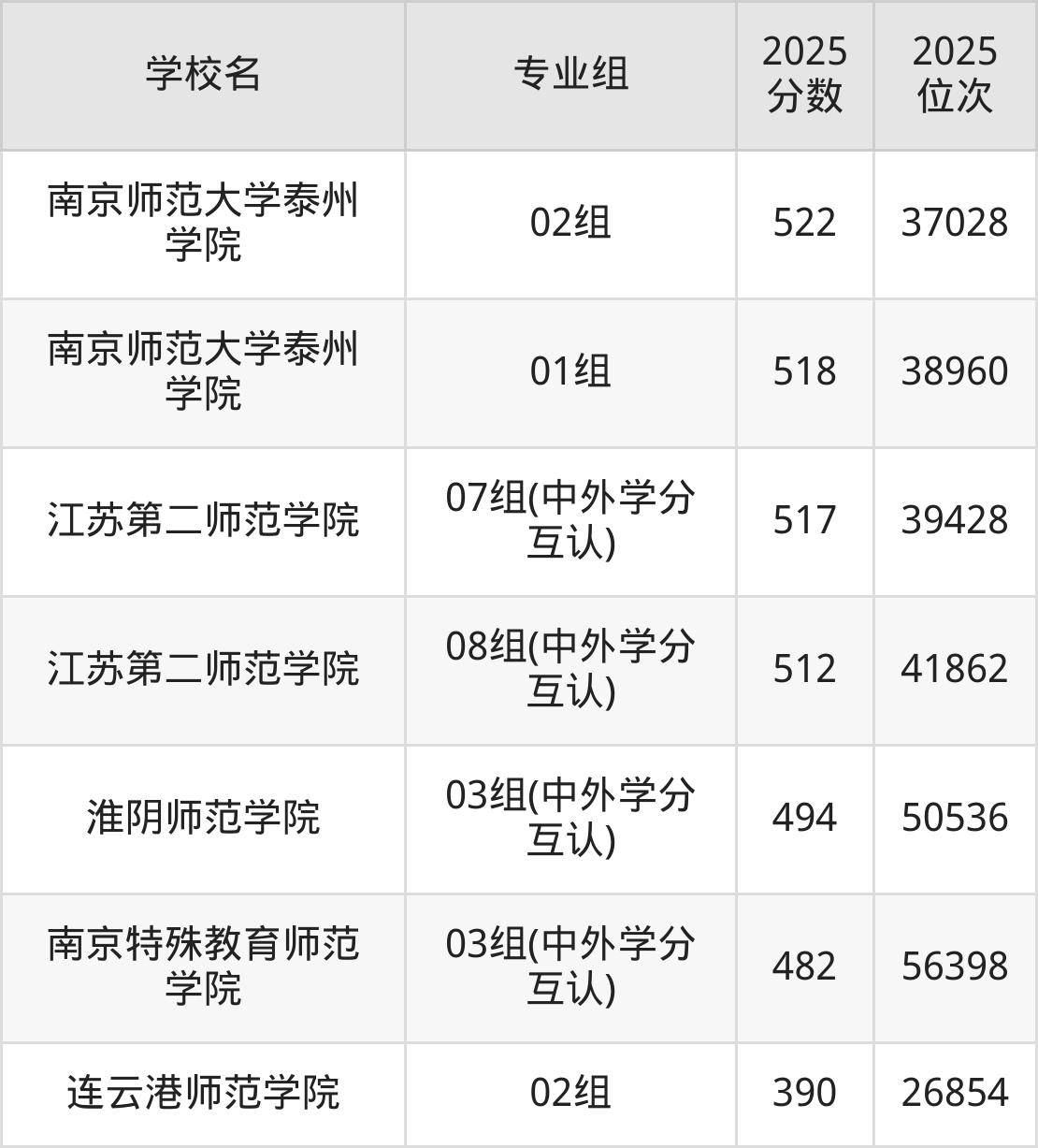江苏省所有二本师范院校2025年录取分数线一览表(前43院校专业组):