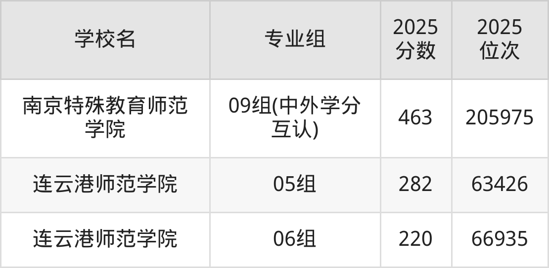 物理类最好考、收分最低的是:连云港师范学院,2025年06组最低分220分,最低排名66935名;历史类最好考、收分最低的是:连云港师范学院,2025年02组最低分390分,最低排名26854名。