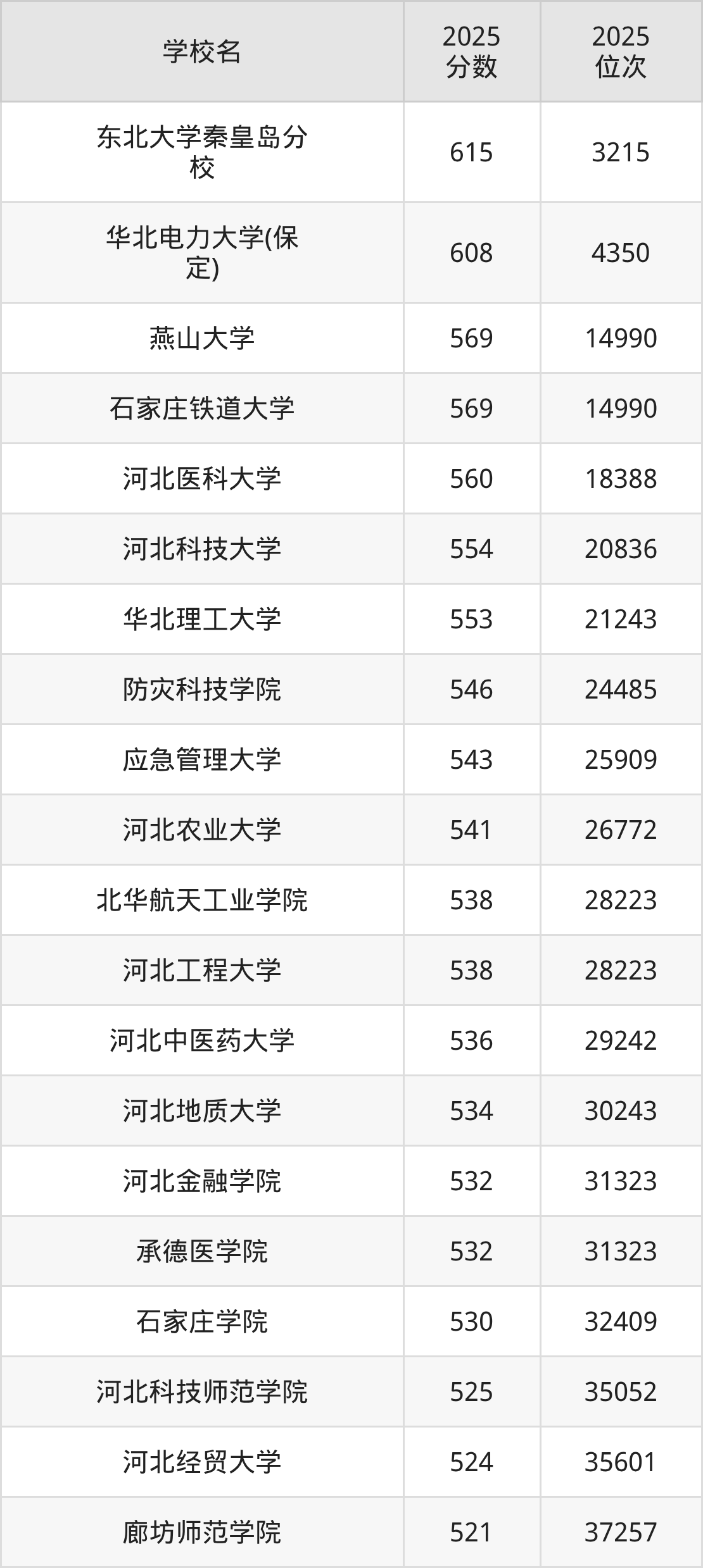 按照2025年河北省所有公办本科院校在省内录取分数线高低排名,为大家整理出了河北所有公办本科院校名单如下。