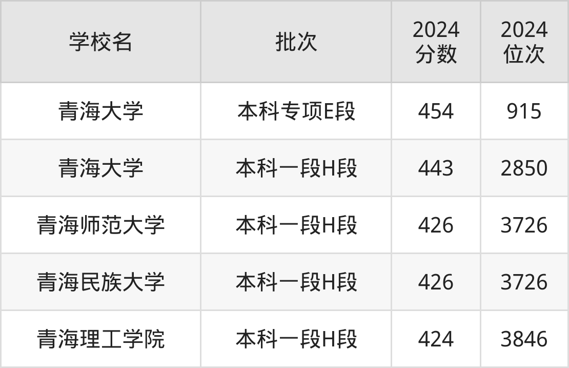 青海省所有文科院校2024年录取分数线一览表(前5院校):