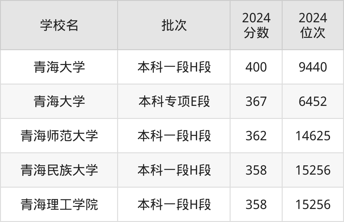 理科最好考、收分最低的是:青海民族大学,2024年最低分358分,最低排名15256名;文科最好考、收分最低的是:青海理工学院,2024年最低分424分,最低排名3846名。