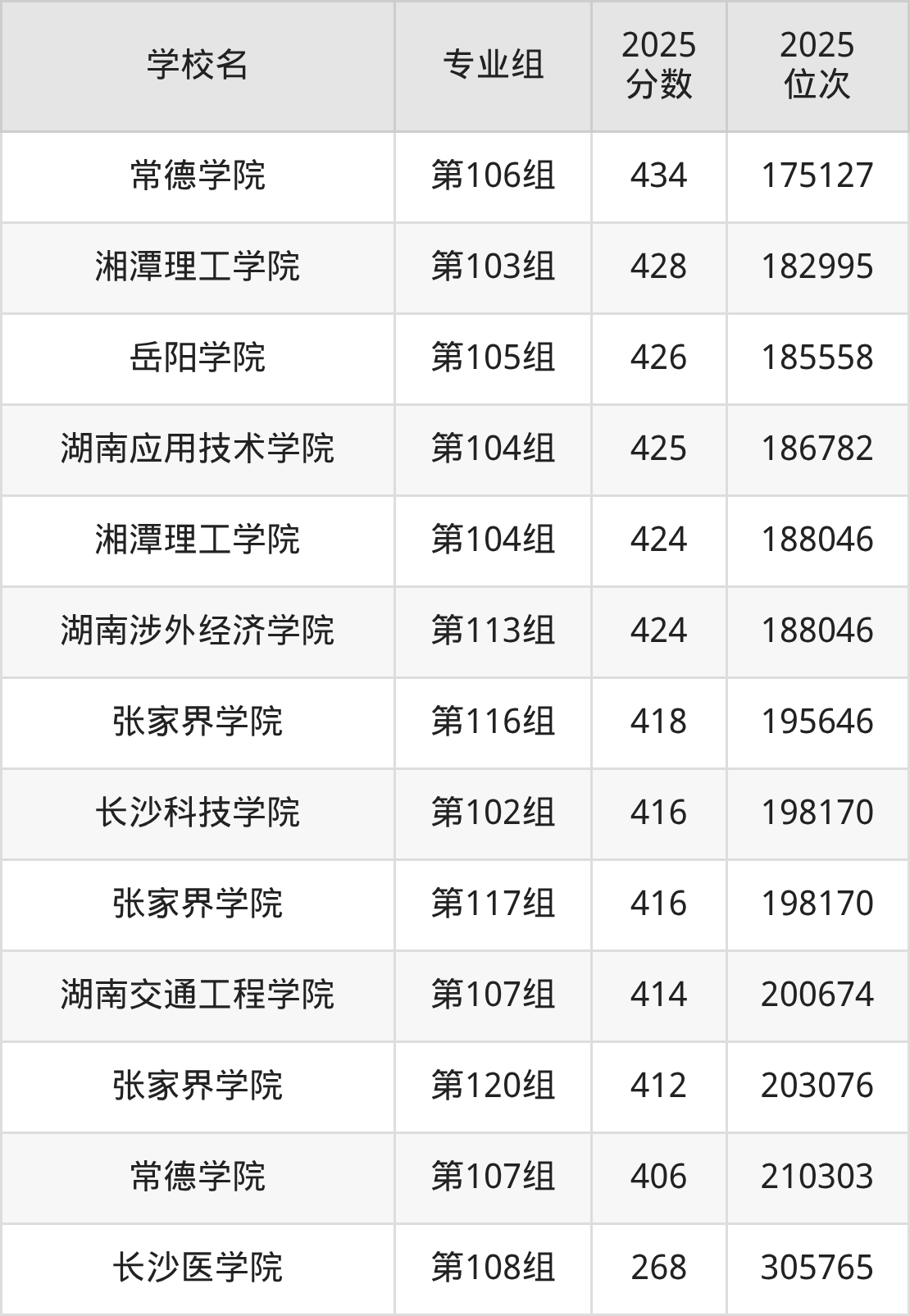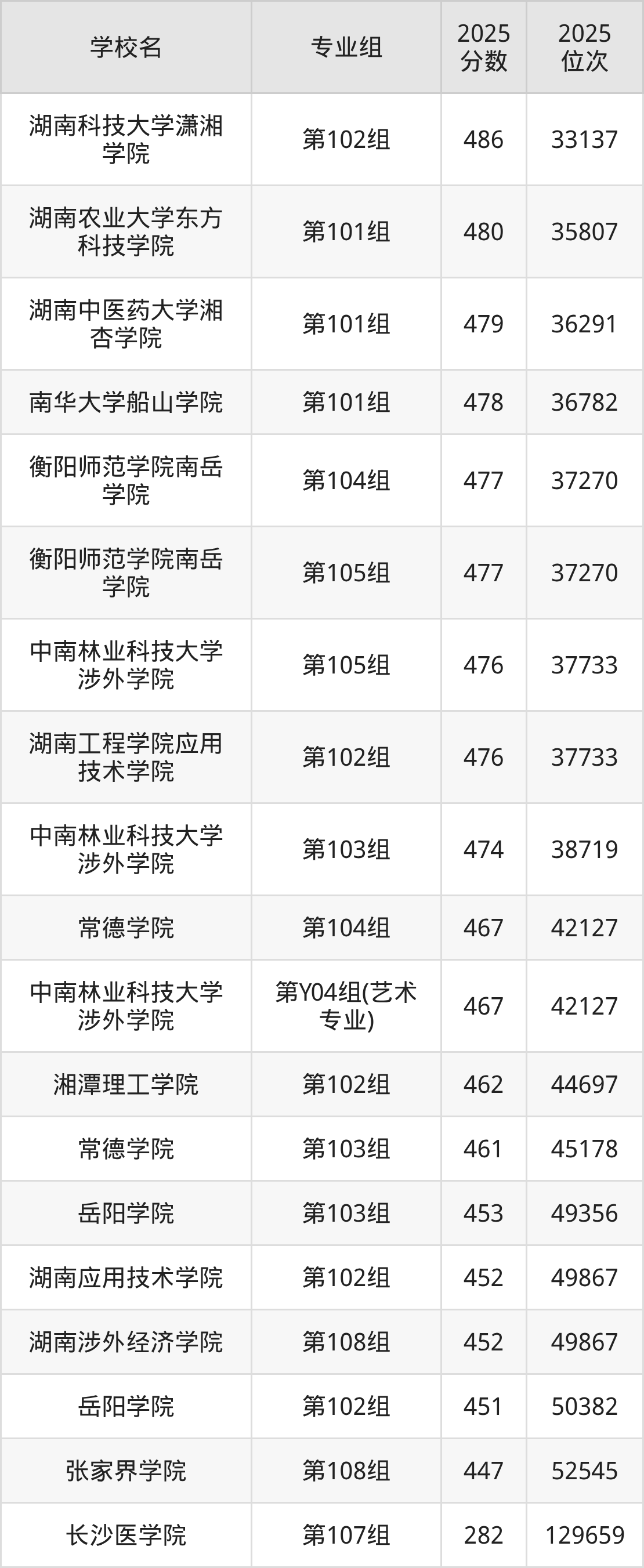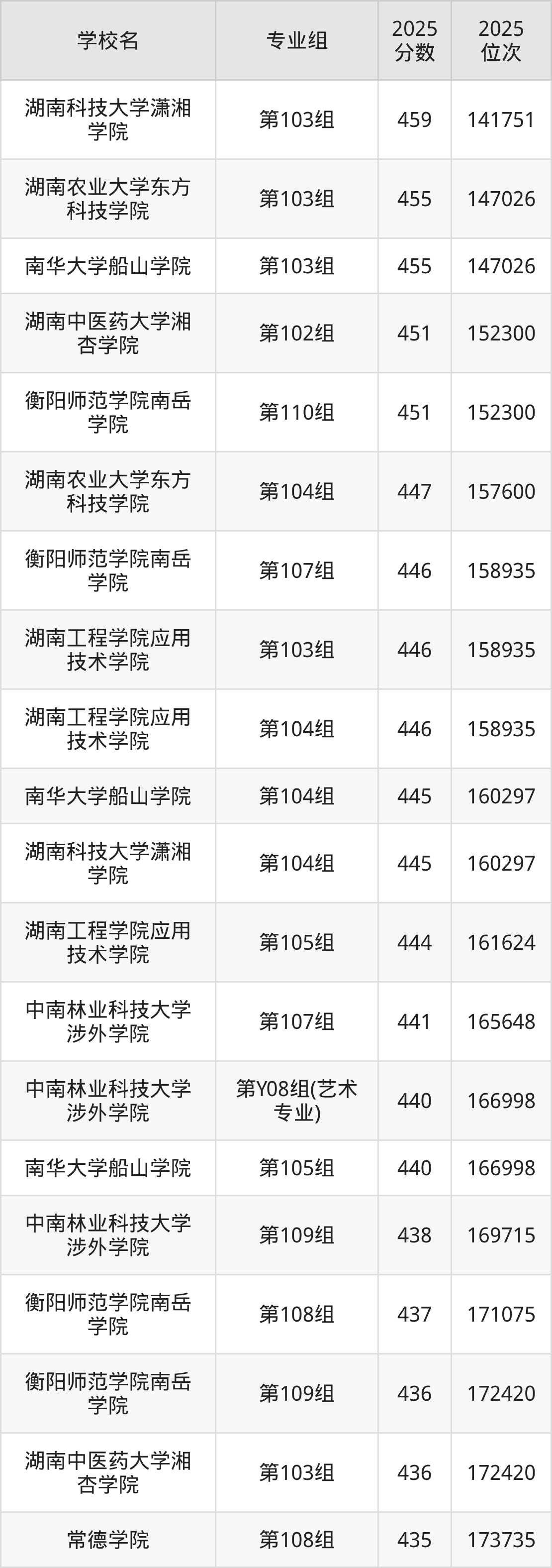 湖南省所有民办本科院校2025年录取分数线一览表: