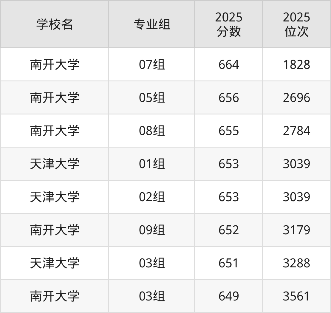 天津市所有985院校2025年录取分数线一览表(前8院校专业组):