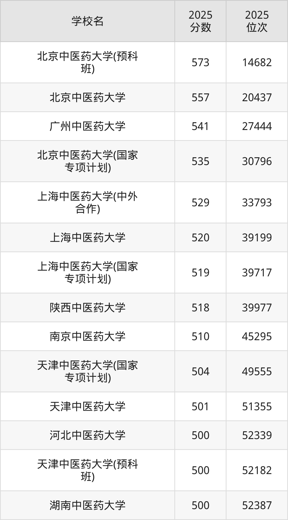 一、500到600分的中医药大学