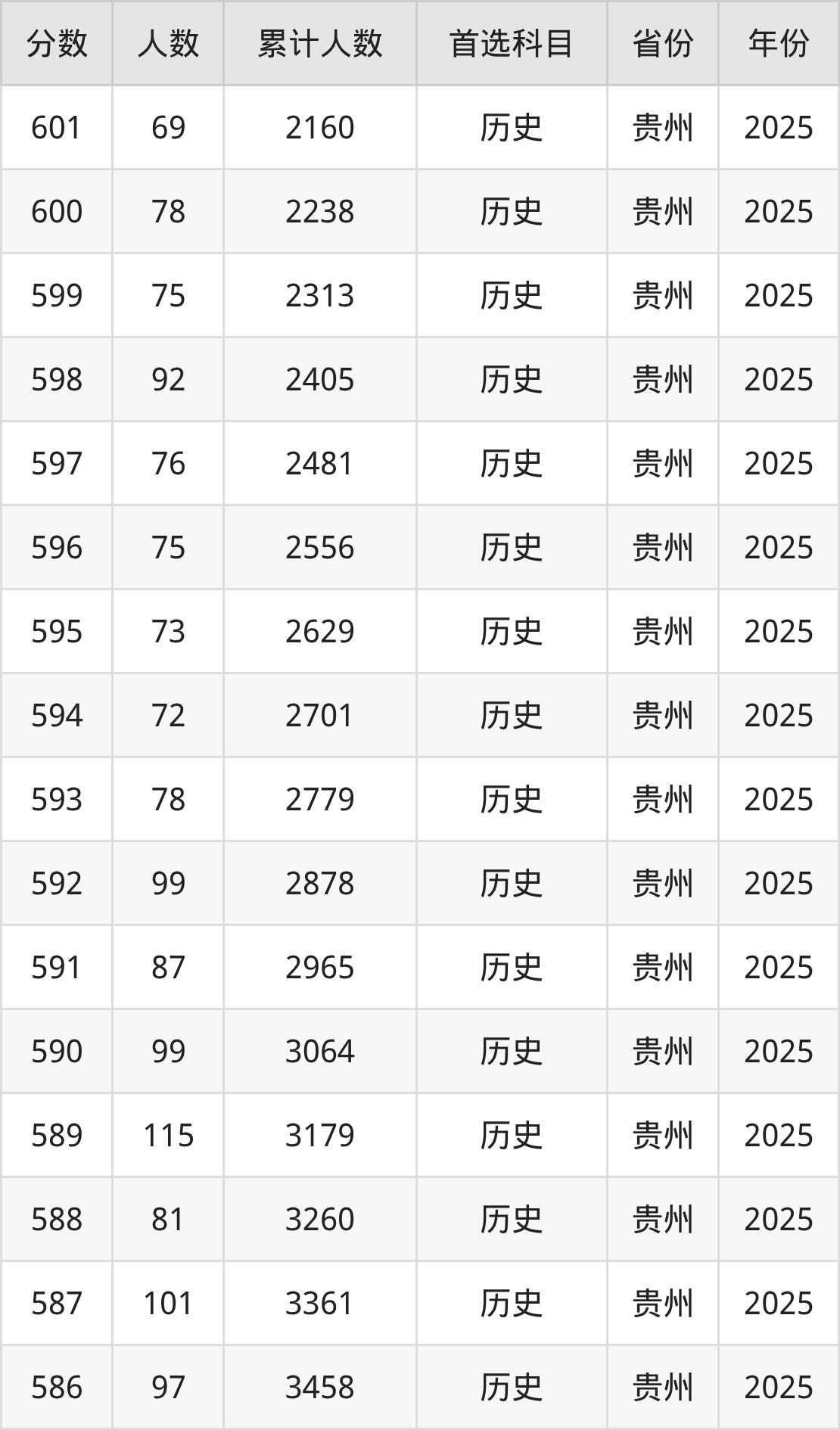 历史类500到600分的位次排名:2161名~21892名