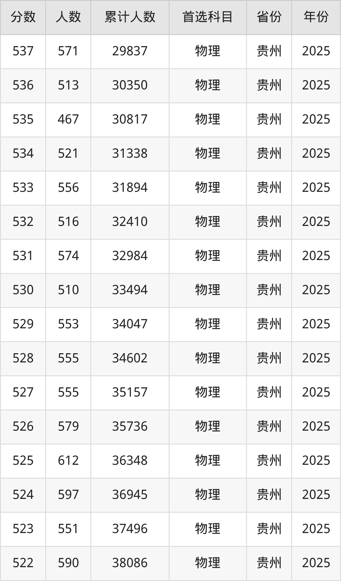 物理类500到600分的位次排名:6974名~52633名