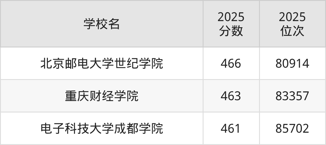 | 学校名 | 2025 分数 | 2025 位次 |