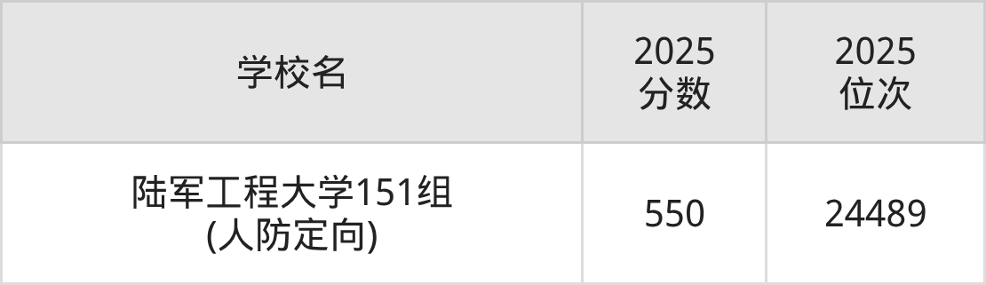 物理类540到560分的大学中分数对应位次最低的是陆军工程大学151组(人防定向),2025年最低分550分,对应最低位次是24489名。