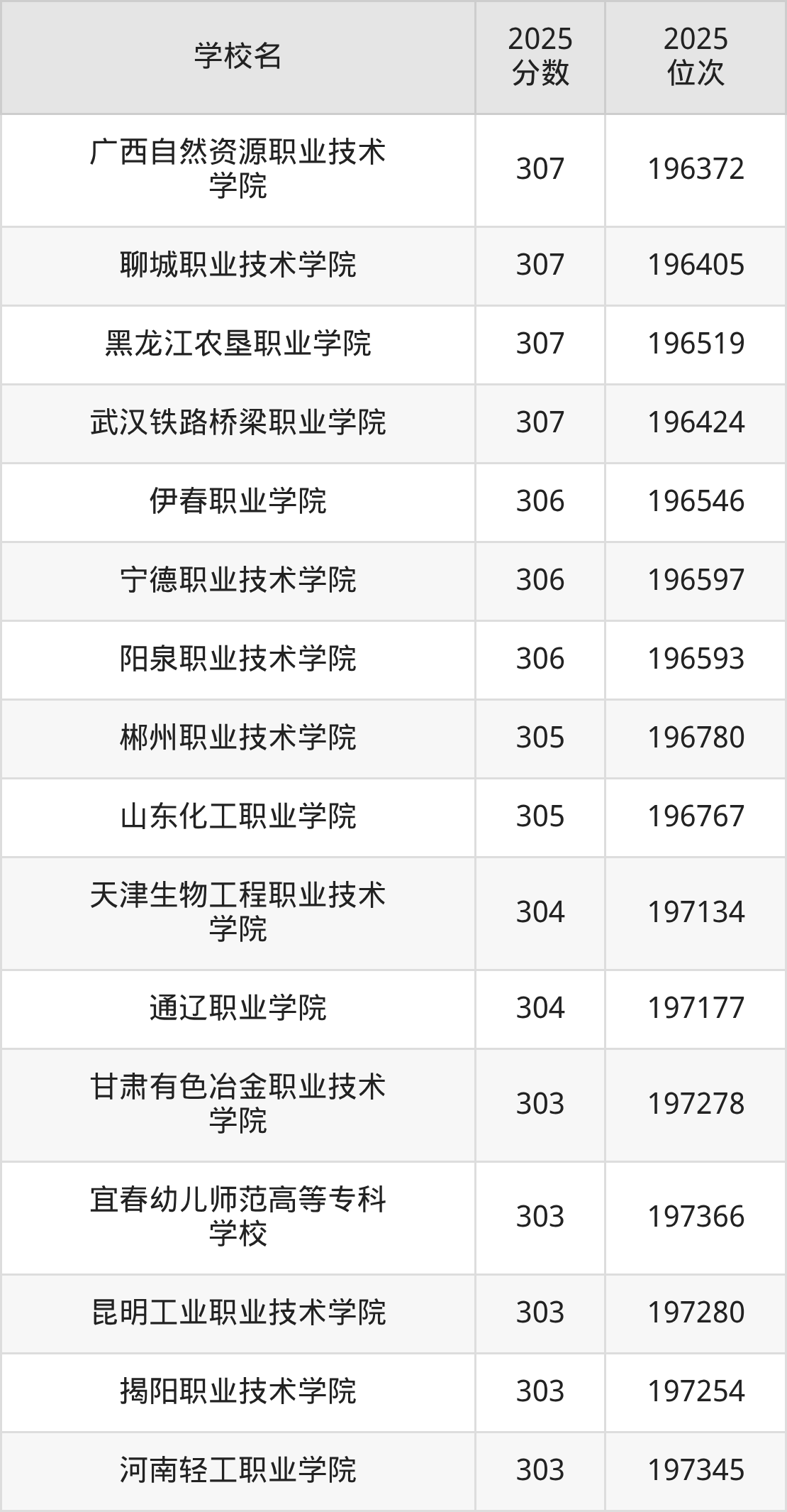 | 湖南水利水电职业技术 学院 | 301 | 85573 |