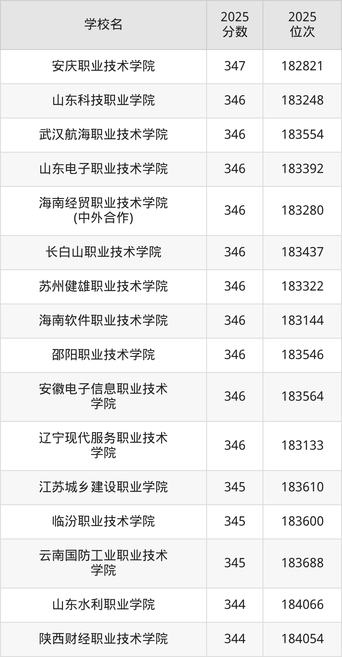 | 湖南安全技术职业学院 | 344 | 79802 |