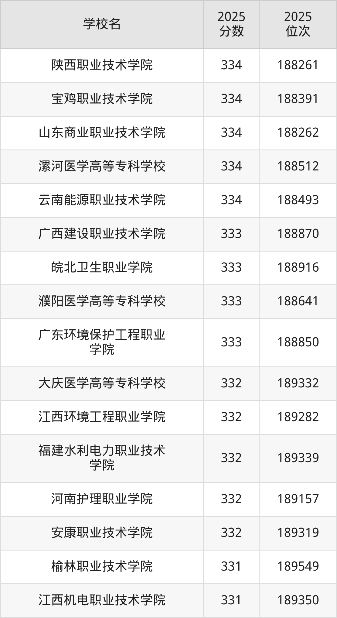 | 陕西邮电职业技术学院 | 335 | 81567 |