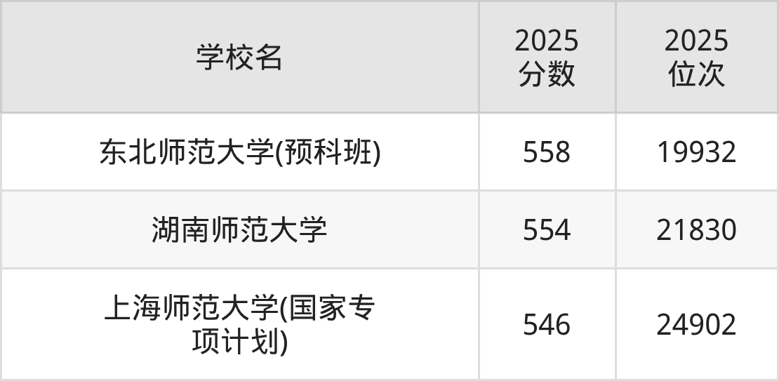 温馨提示:全国各省录取分数线不相同,本文以贵州省为例,为大家带来2025年录取分数线位于540到560分的师范大学名单汇总,并附上该分数段对应的位次排名区间,供查阅。