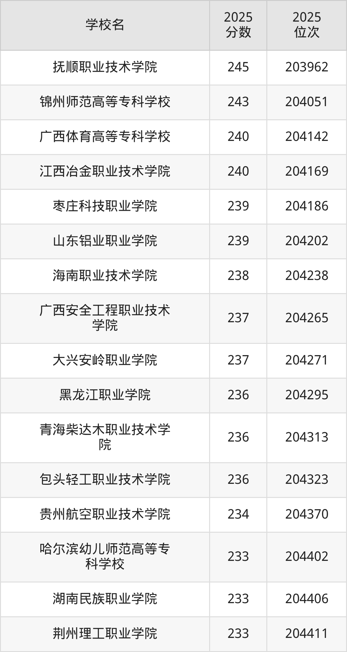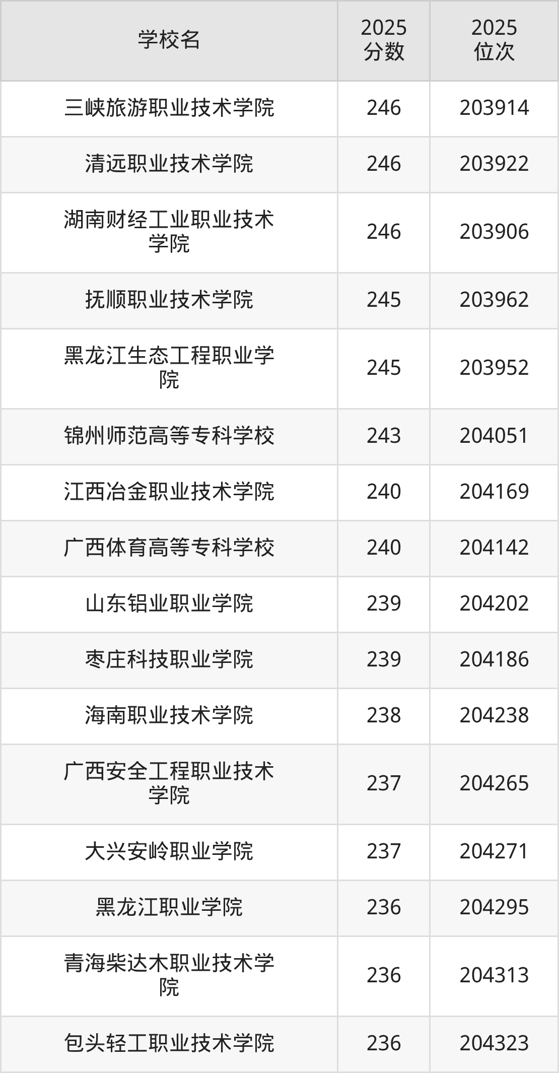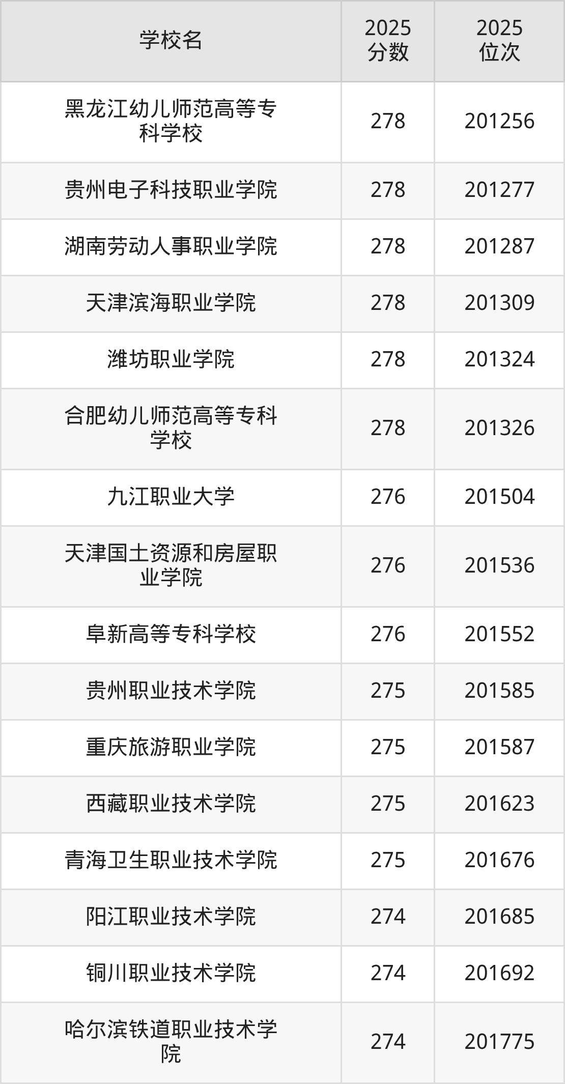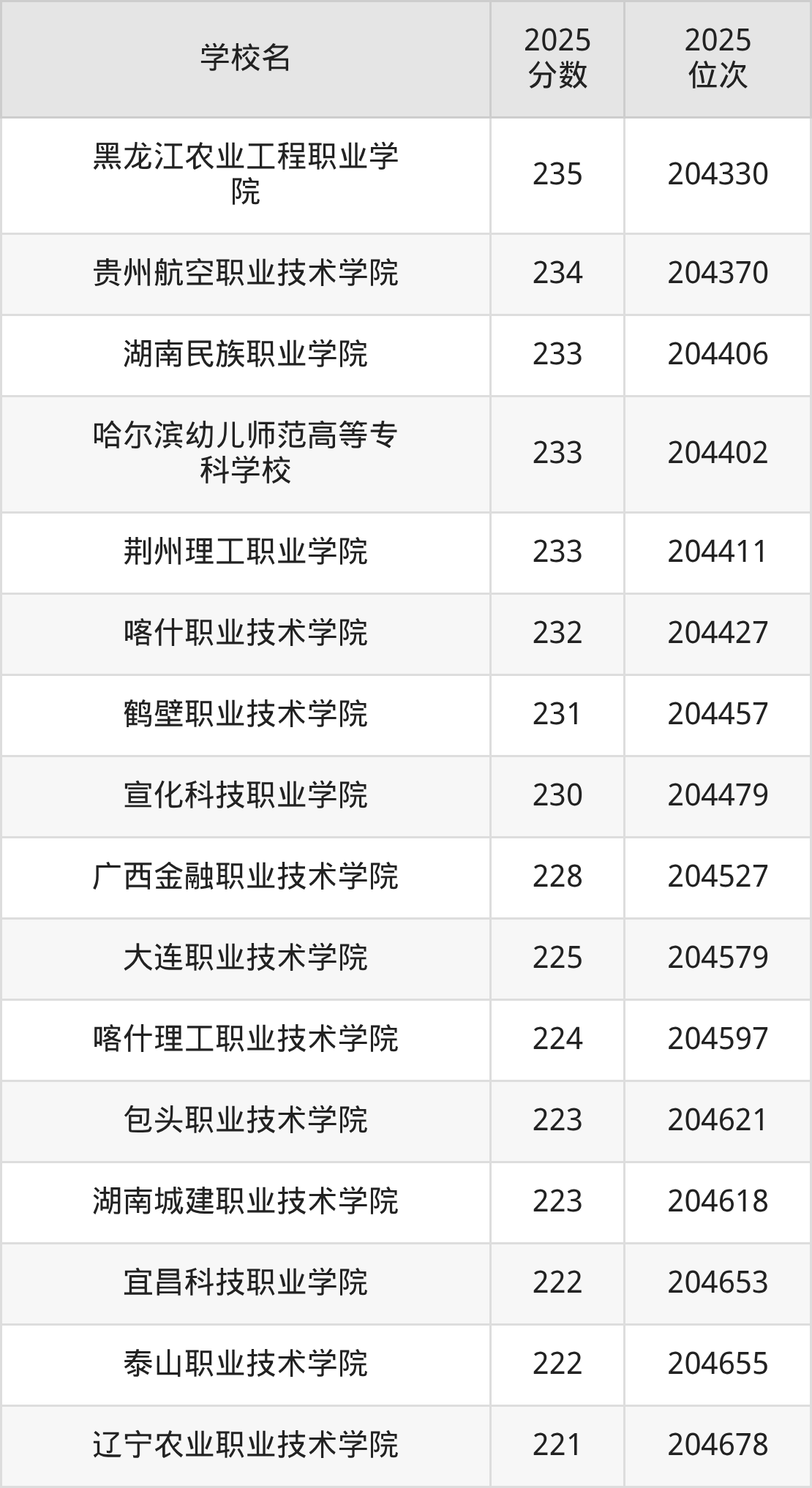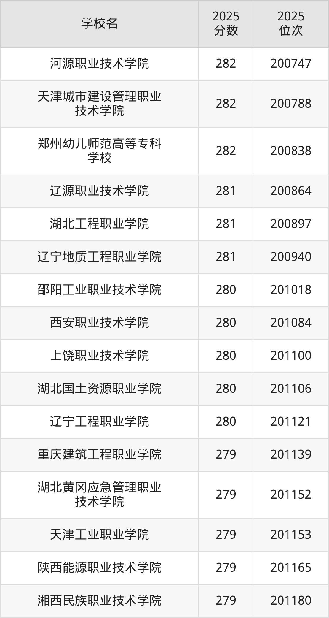 温馨提示:全国各省录取分数线不相同,本文以贵州省为例,为大家带来2025年录取分数线位于200到300分的公办专科学校名单汇总,并附上该分数段对应的位次排名区间,供查阅。