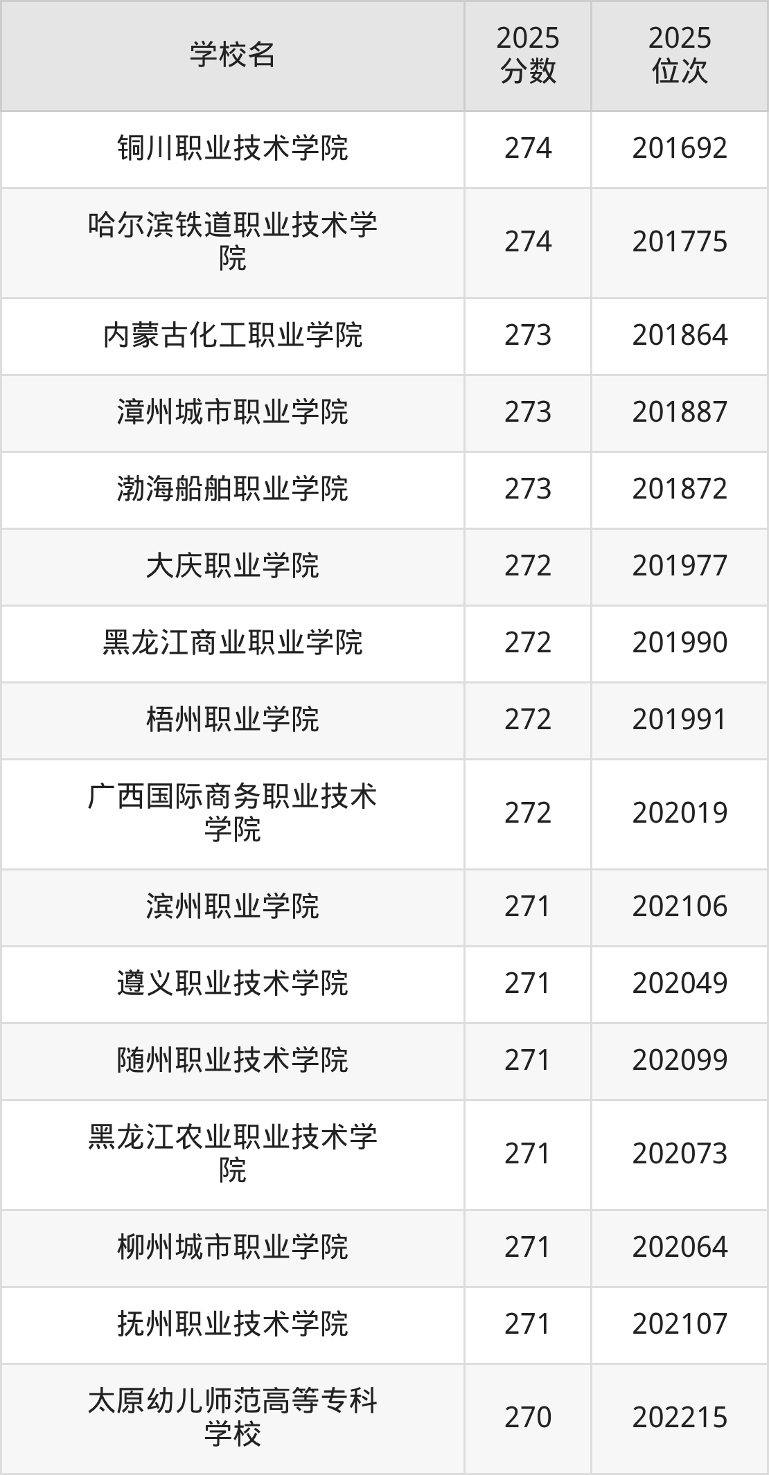 | 哈尔滨铁道职业技术学 院 | 260 | 87641 |