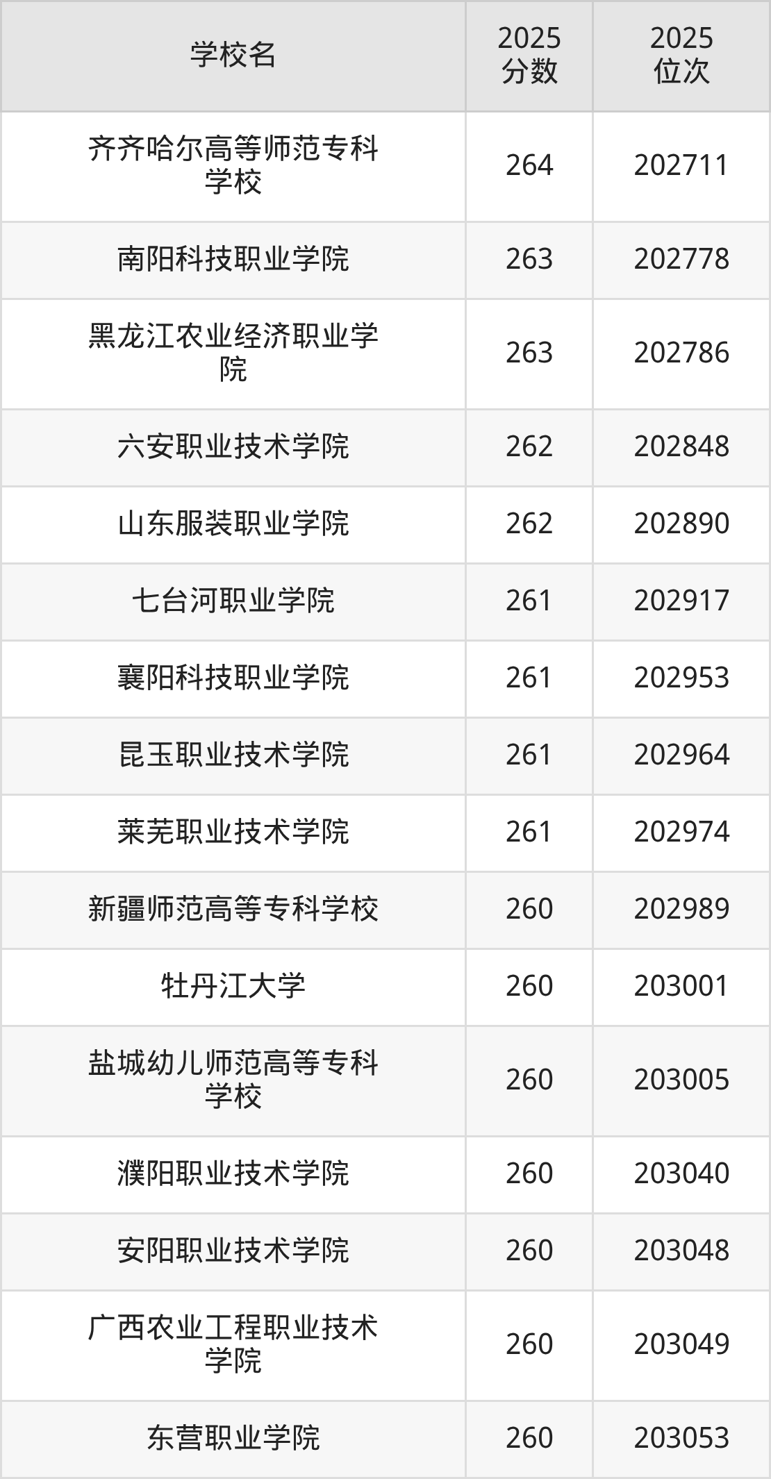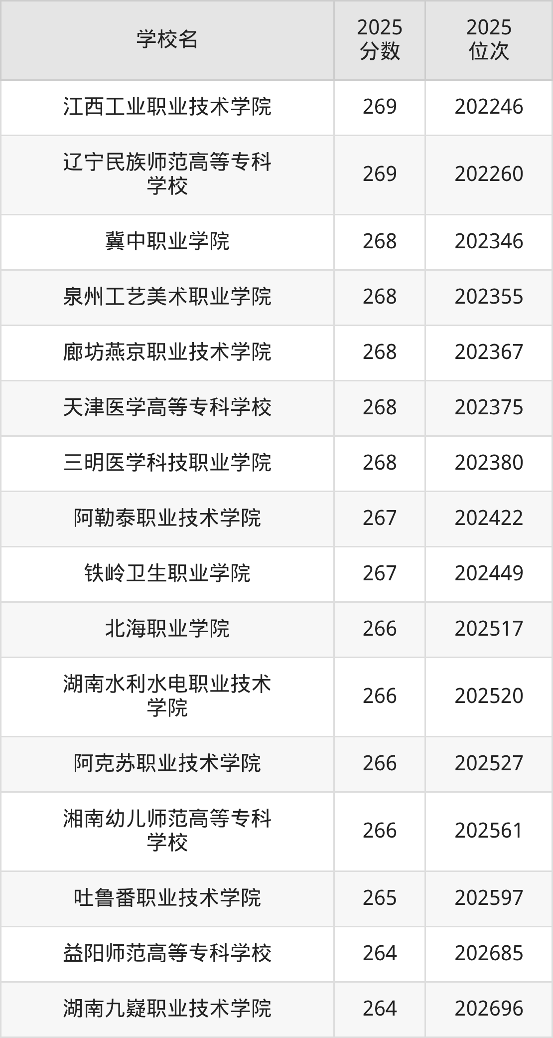 录取分数线的波动较大,下面圆梦小编为大家带来了2025年200到300分对应的位次排名区间,建议2026年位于该位次范围内的考生参考上文所整理的学校(本文仅针对贵州省)。
