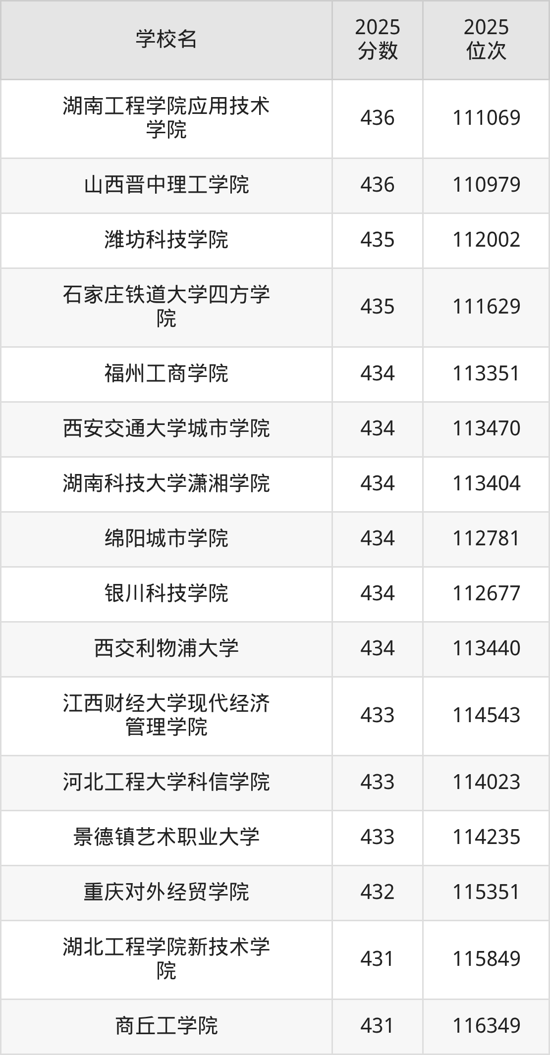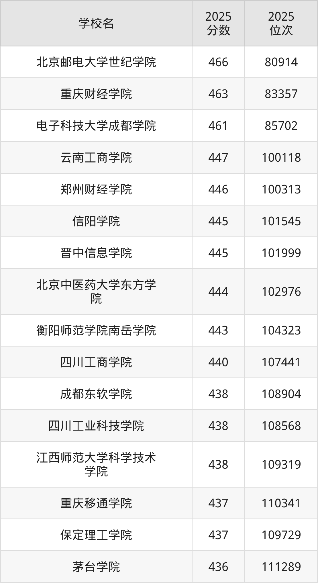 温馨提示:全国各省录取分数线不相同,本文以贵州省为例,为大家带来2025年录取分数线位于430到470分的二本民办大学名单汇总,并附上该分数段对应的位次排名区间,供查阅。