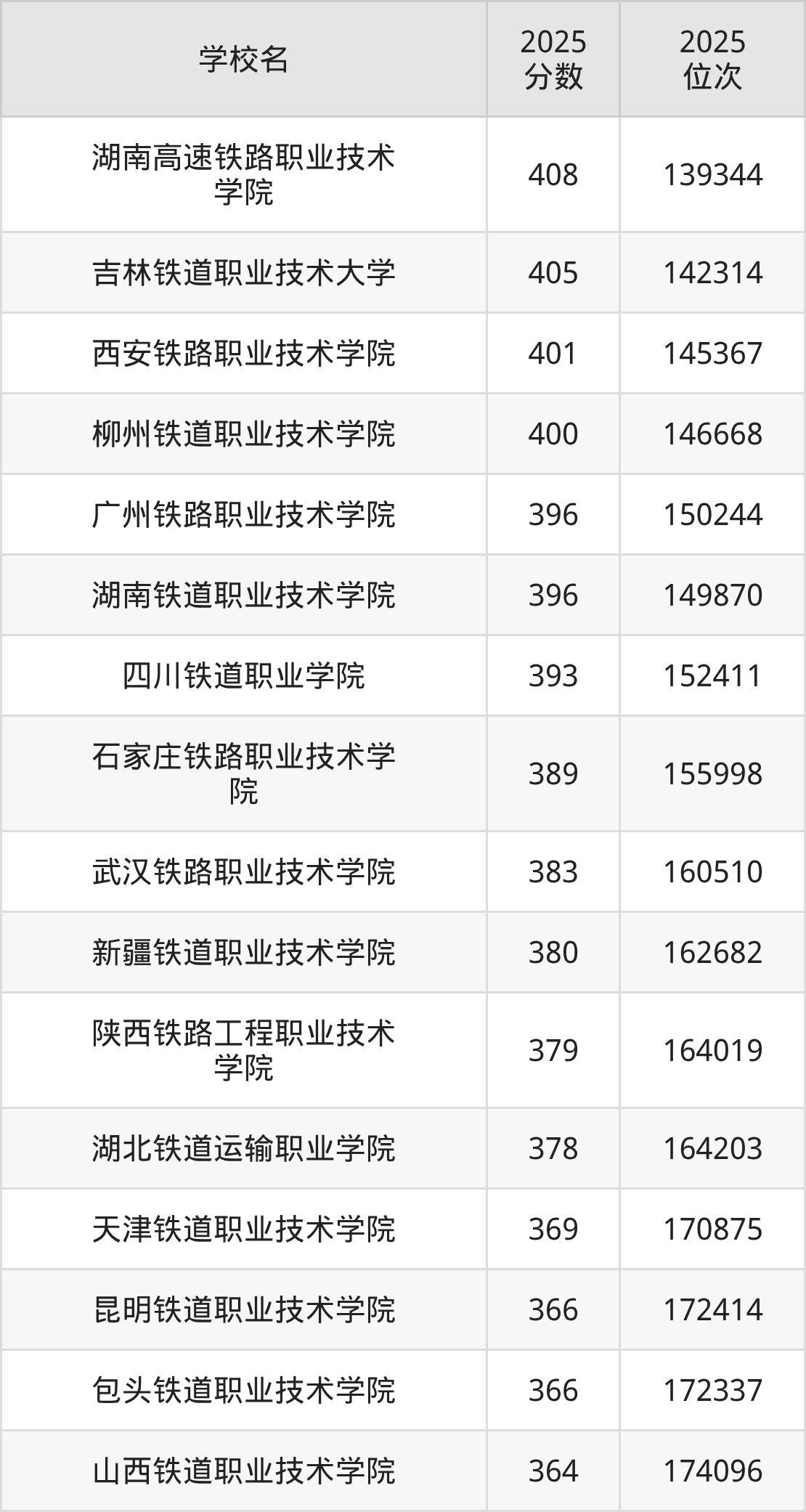 | 湖北铁道运输职业学院 | 419 | 56016 |