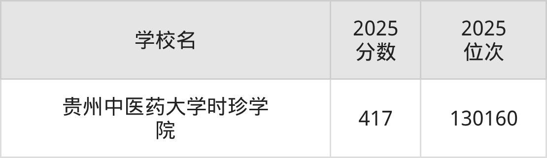 温馨提示:全国各省录取分数线不相同,本文以贵州省为例,为大家带来2025年录取分数线位于400到420分的中医药大学名单汇总,并附上该分数段对应的位次排名区间,供查阅。