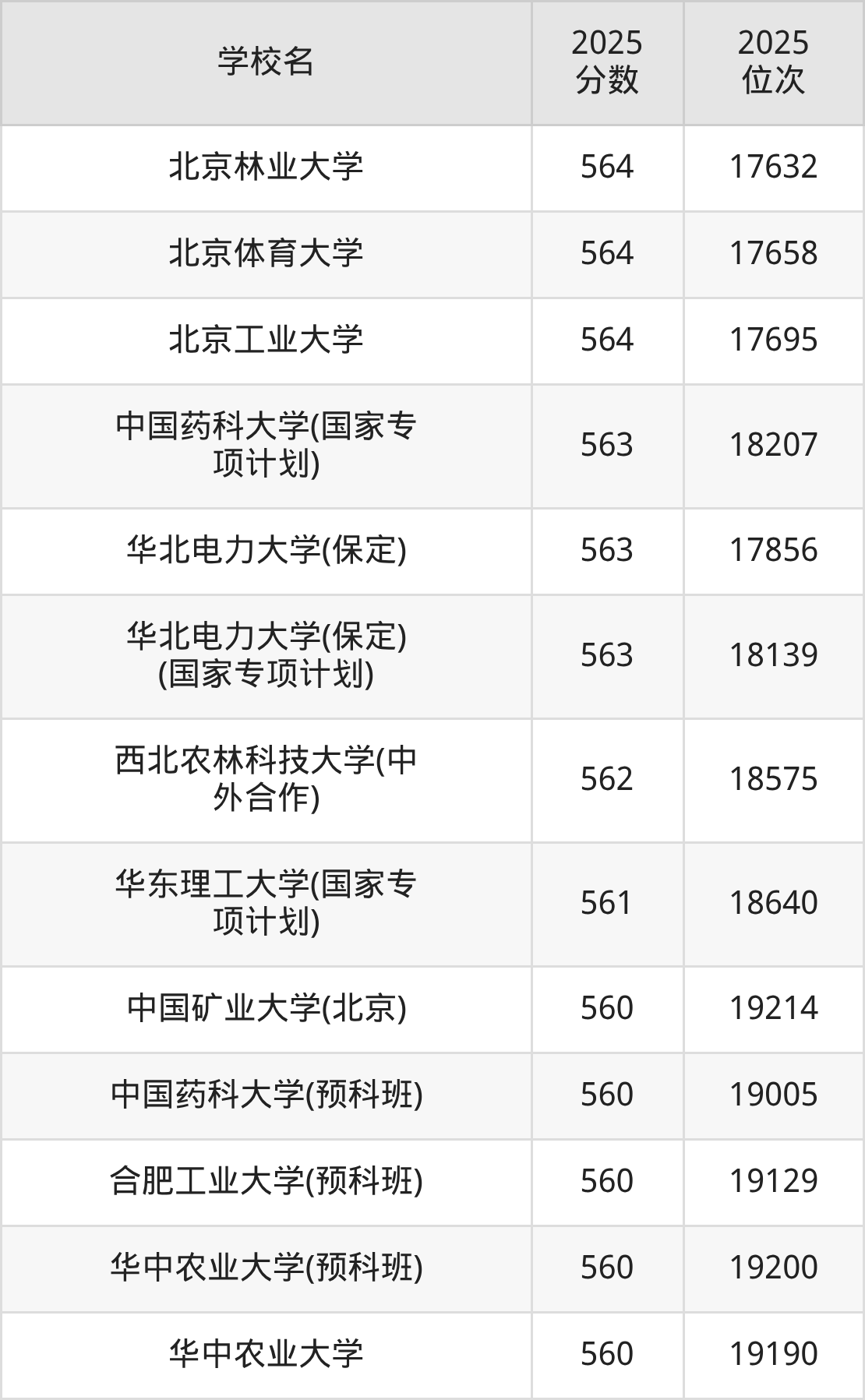 录取分数线的波动较大,下面圆梦小编为大家带来了2025年560到570分对应的位次排名区间,建议2026年位于该位次范围内的考生参考上文所整理的学校(本文仅针对贵州省)。