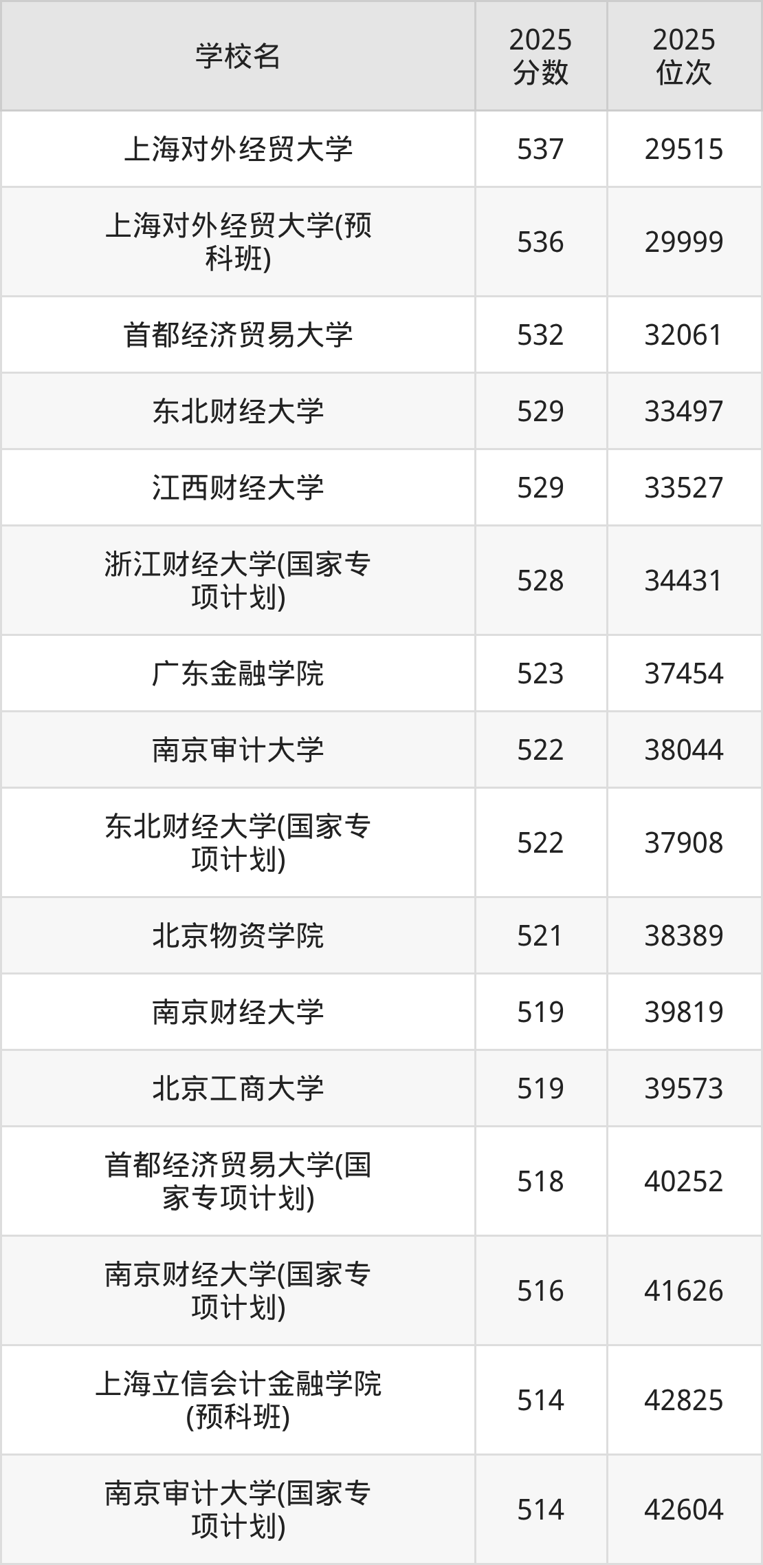 | 首都经济贸易大学(国 家专项计划) | 541 | 10243 |