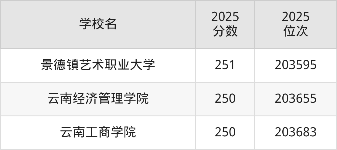 录取分数线的波动较大,下面圆梦小编为大家带来了2025年250到300分对应的位次排名区间,建议2026年位于该位次范围内的考生参考上文所整理的学校(本文仅针对贵州省)。
