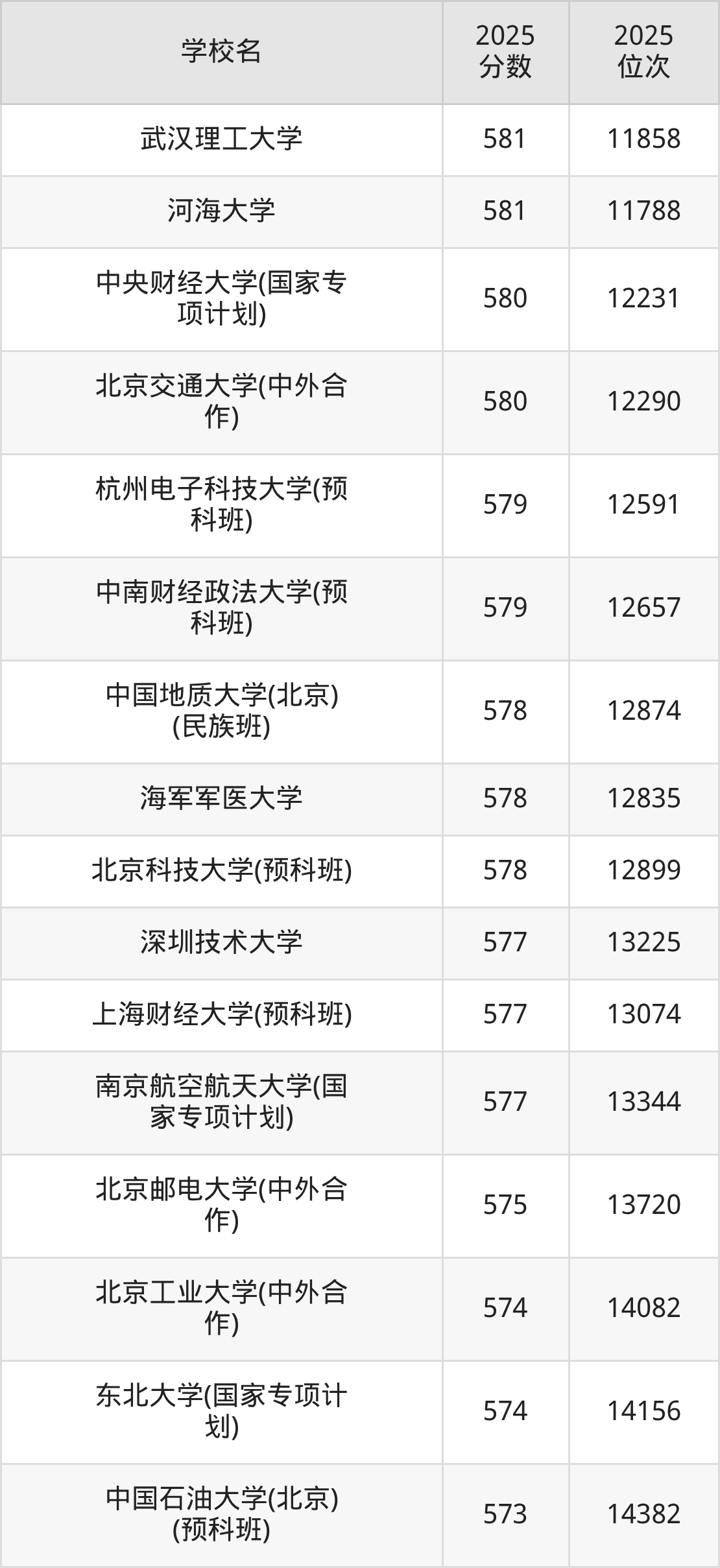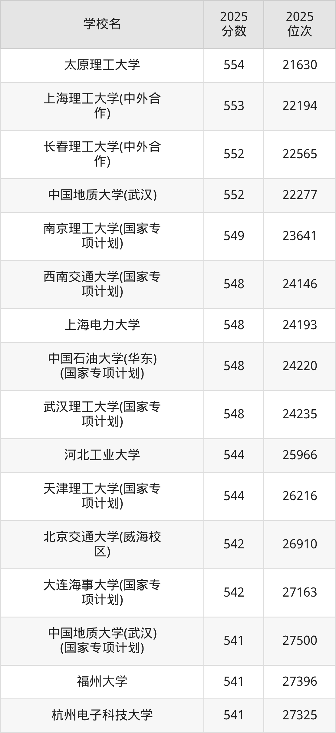 | 学校名 | 2025 分数 | 2025 位次 |